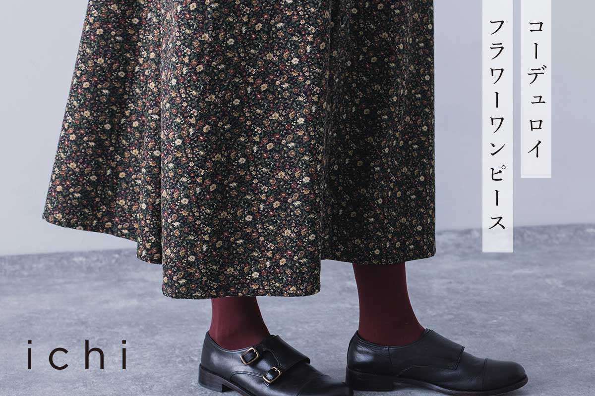 NEWシックに華やぐ繊細なデザイン【 ichi 】コーデュロイ フラワーワンピース