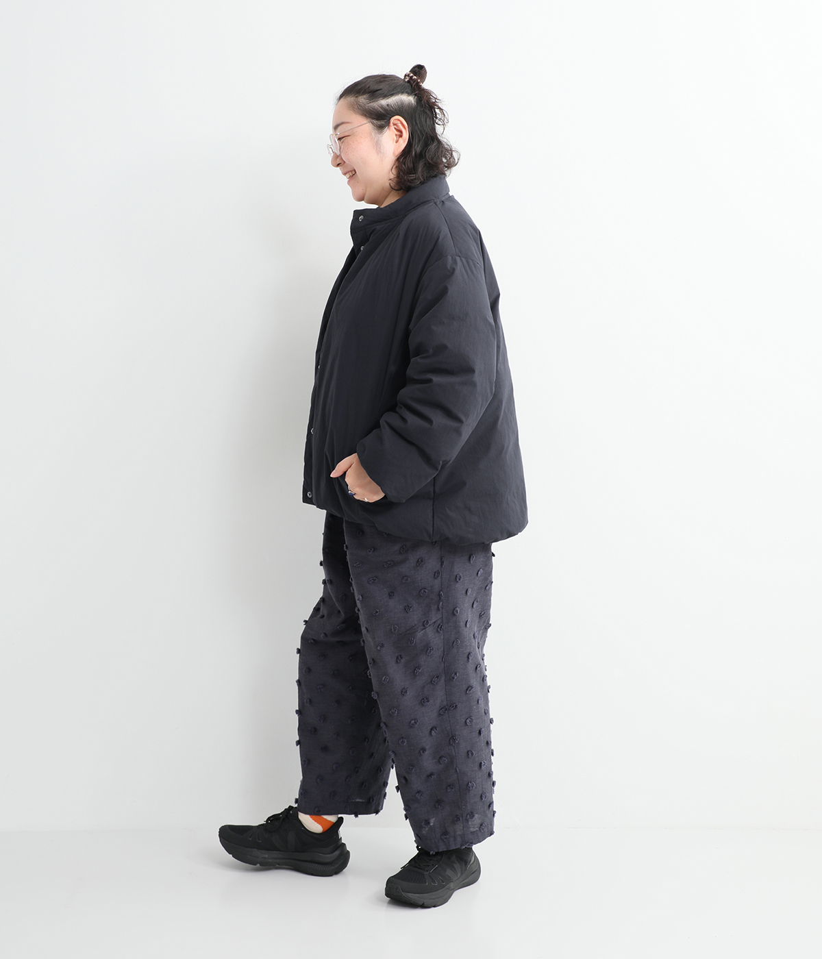nop de nod、ista-ire、ubasokuなど担当バイヤー。トップス:MかL(ものもよる)、ボトムス:L、シューズ:23.5~24cmシンプル、ゆったり。肩幅がせまくてなで肩