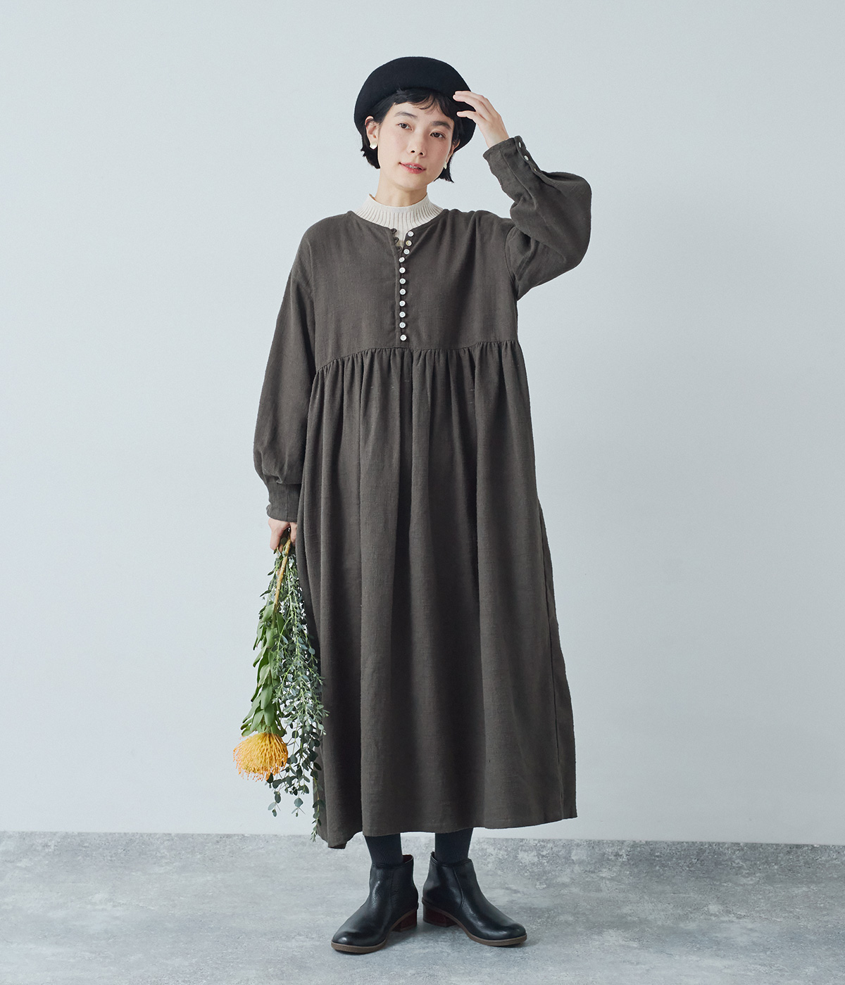 別注|コットンリネン起毛ボリューム袖ワンピース