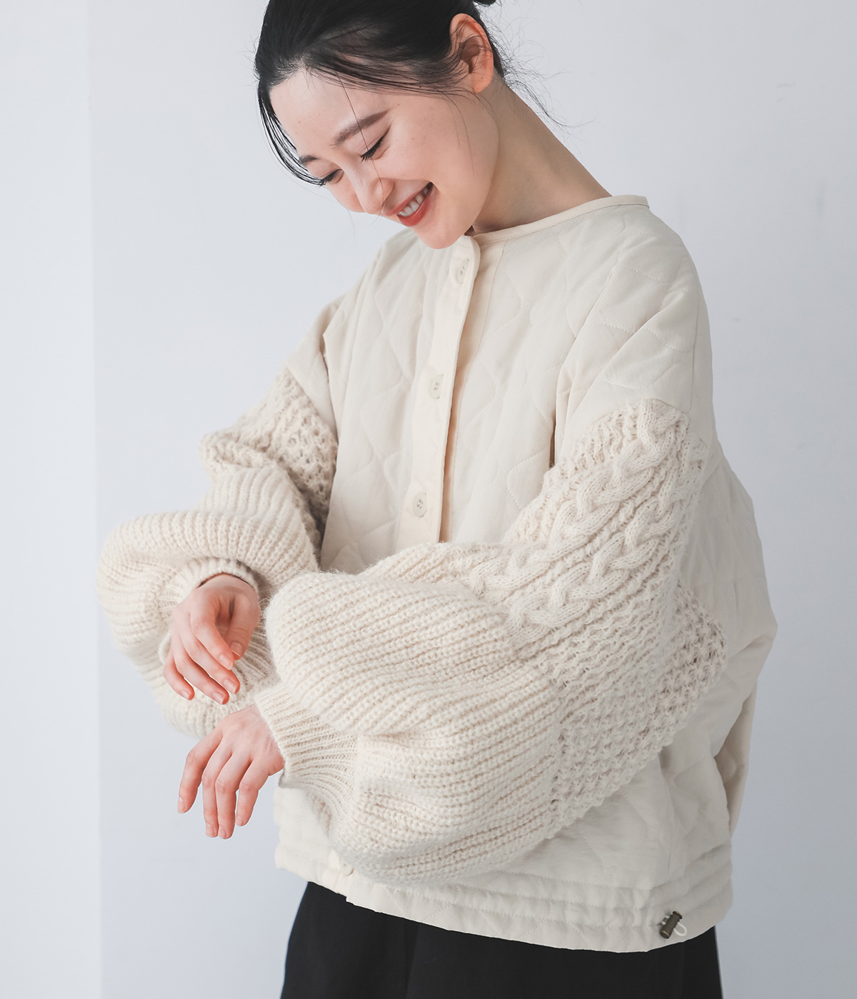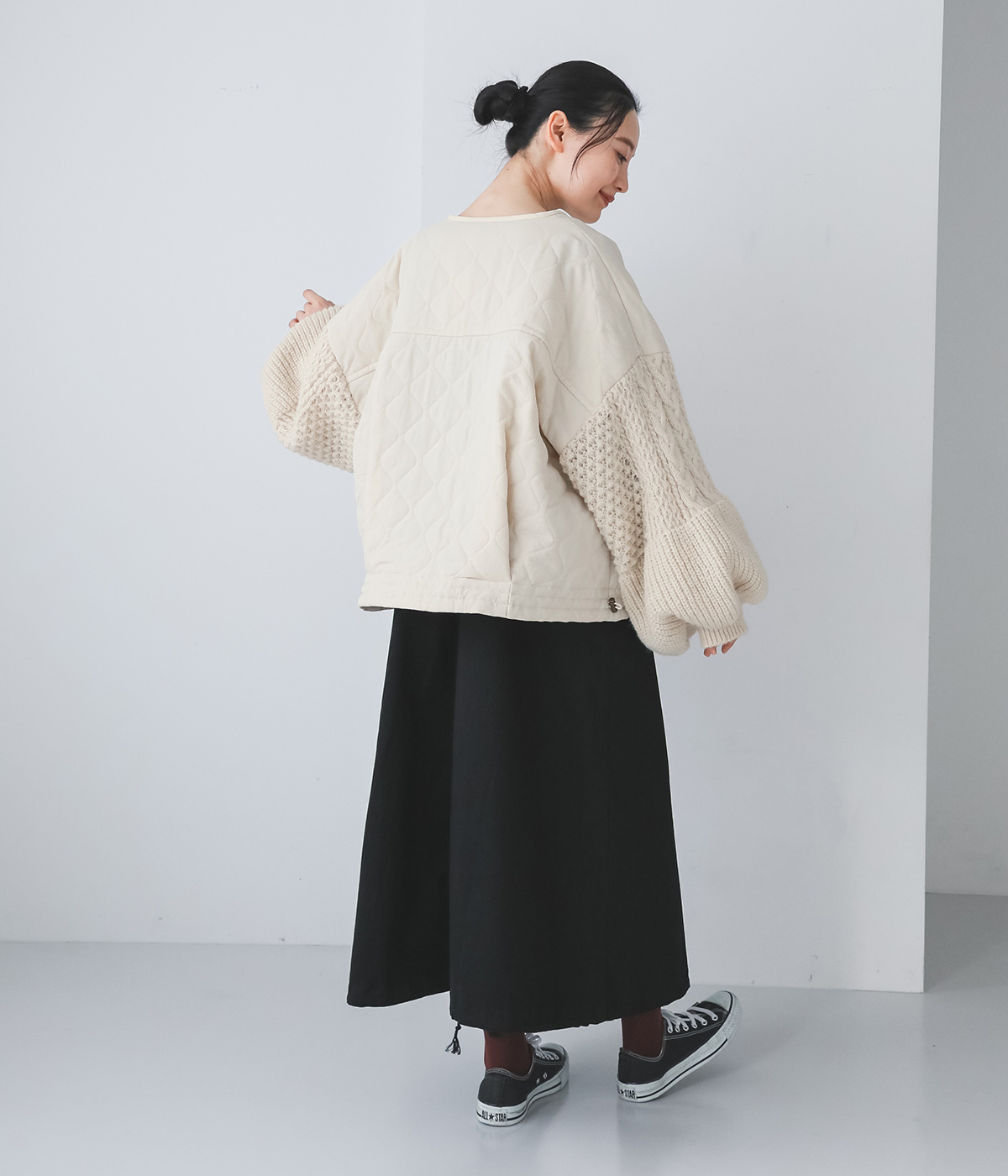 保温中綿ノーカラーハーフコートの着用コーディネート