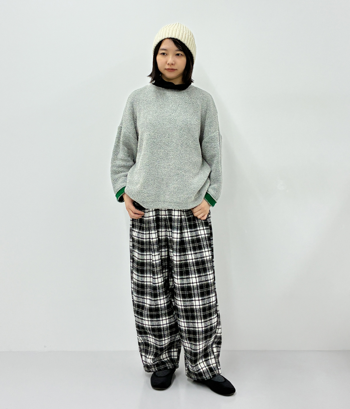 ニット付属使いトレーナーの着用コーディネート