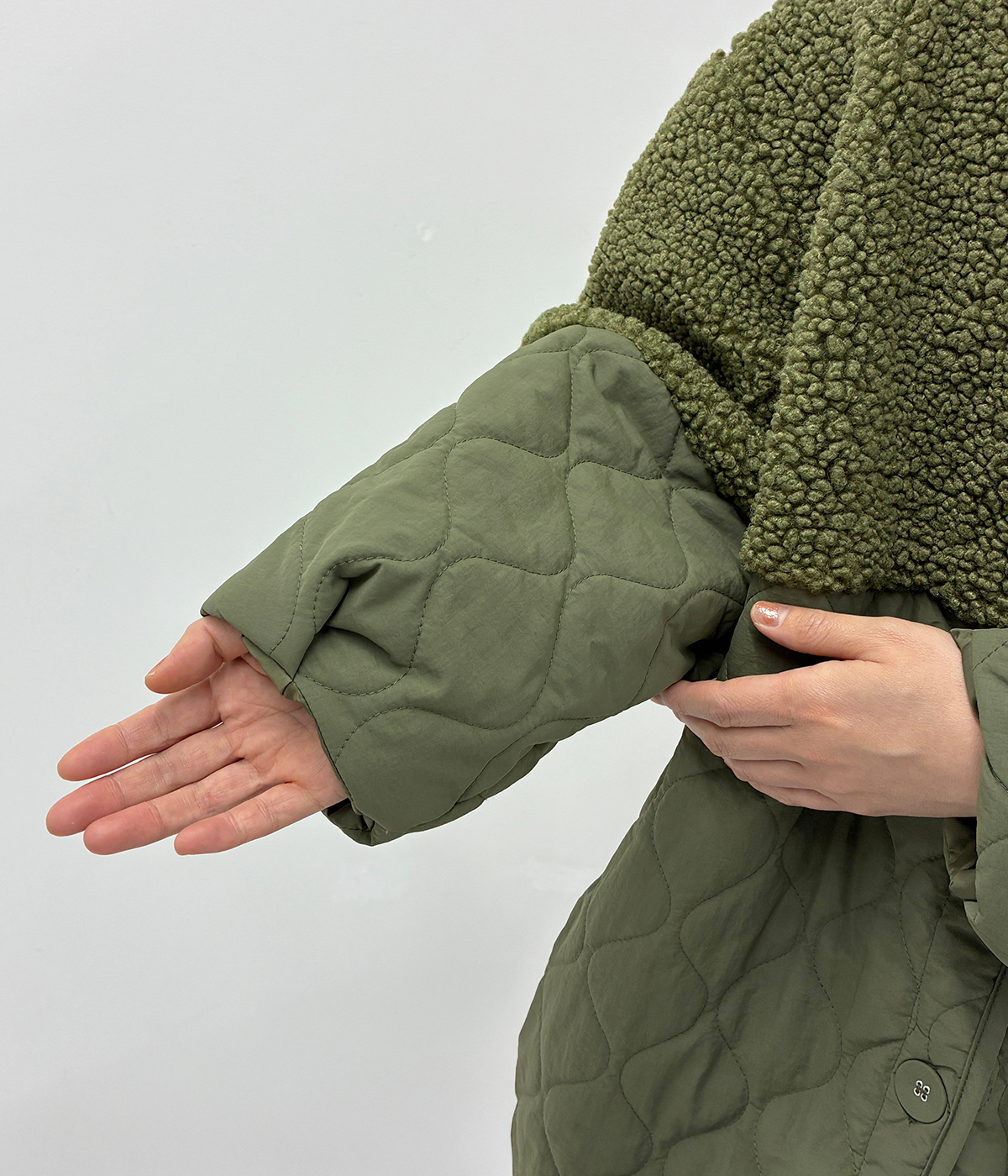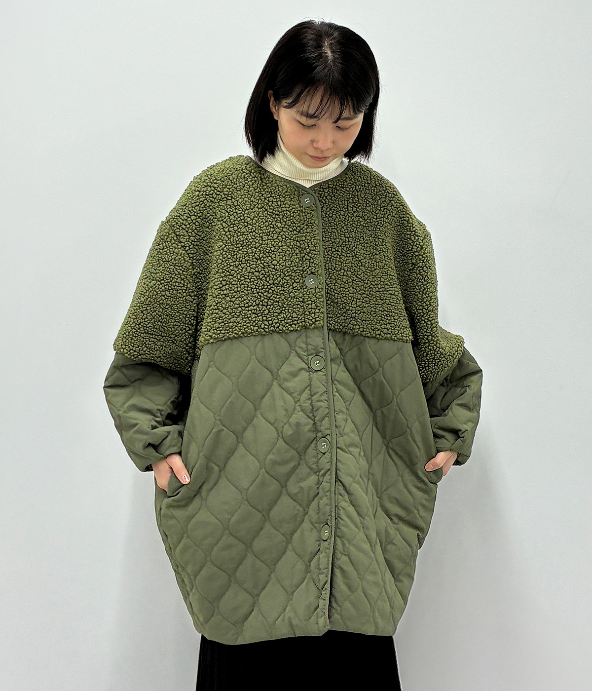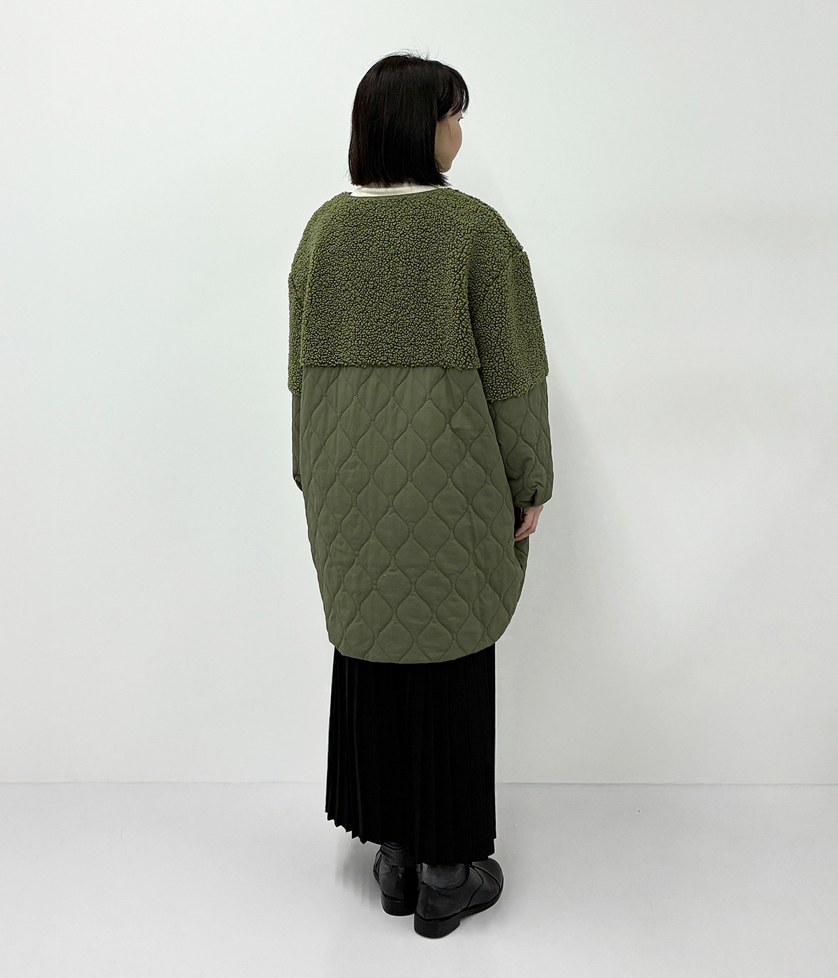 別注|ボアキルトノーカラーコクーンコート
