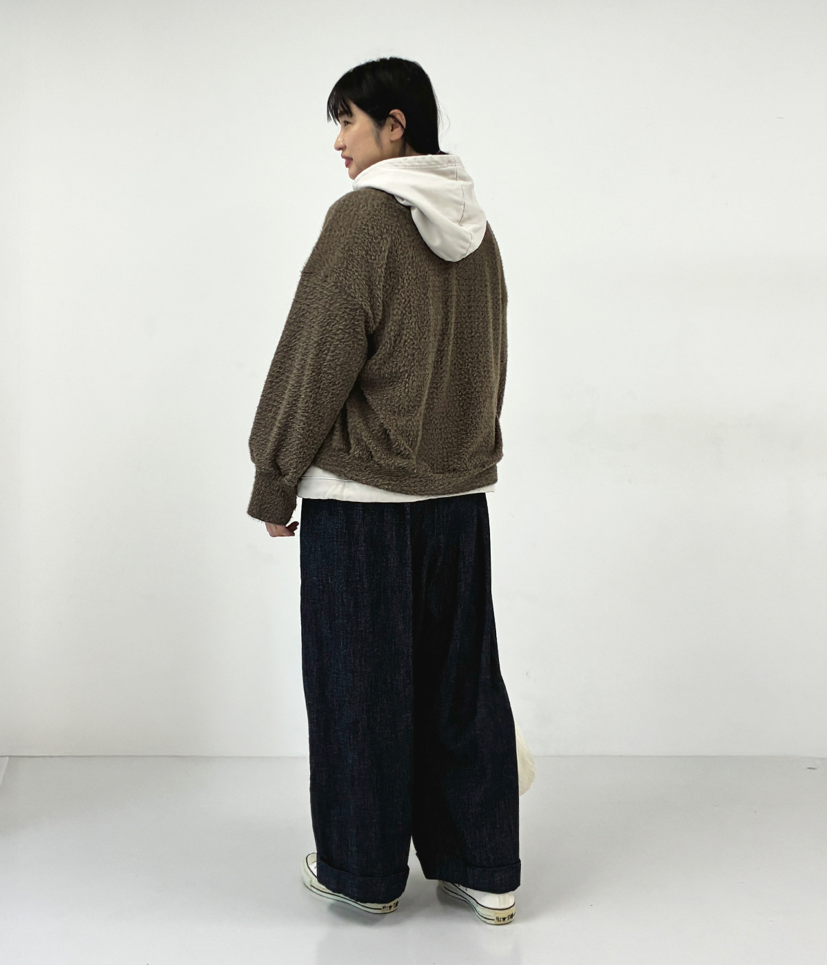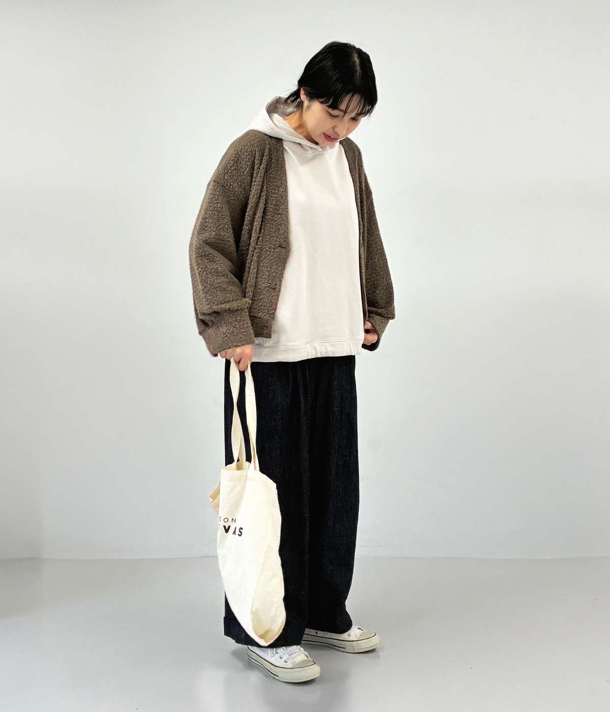 トップス:L、ボトムス:L、シューズ:25.5cm ナチュラルで少し甘めなアイテムに太めのパンツを合わせるのが好きです。