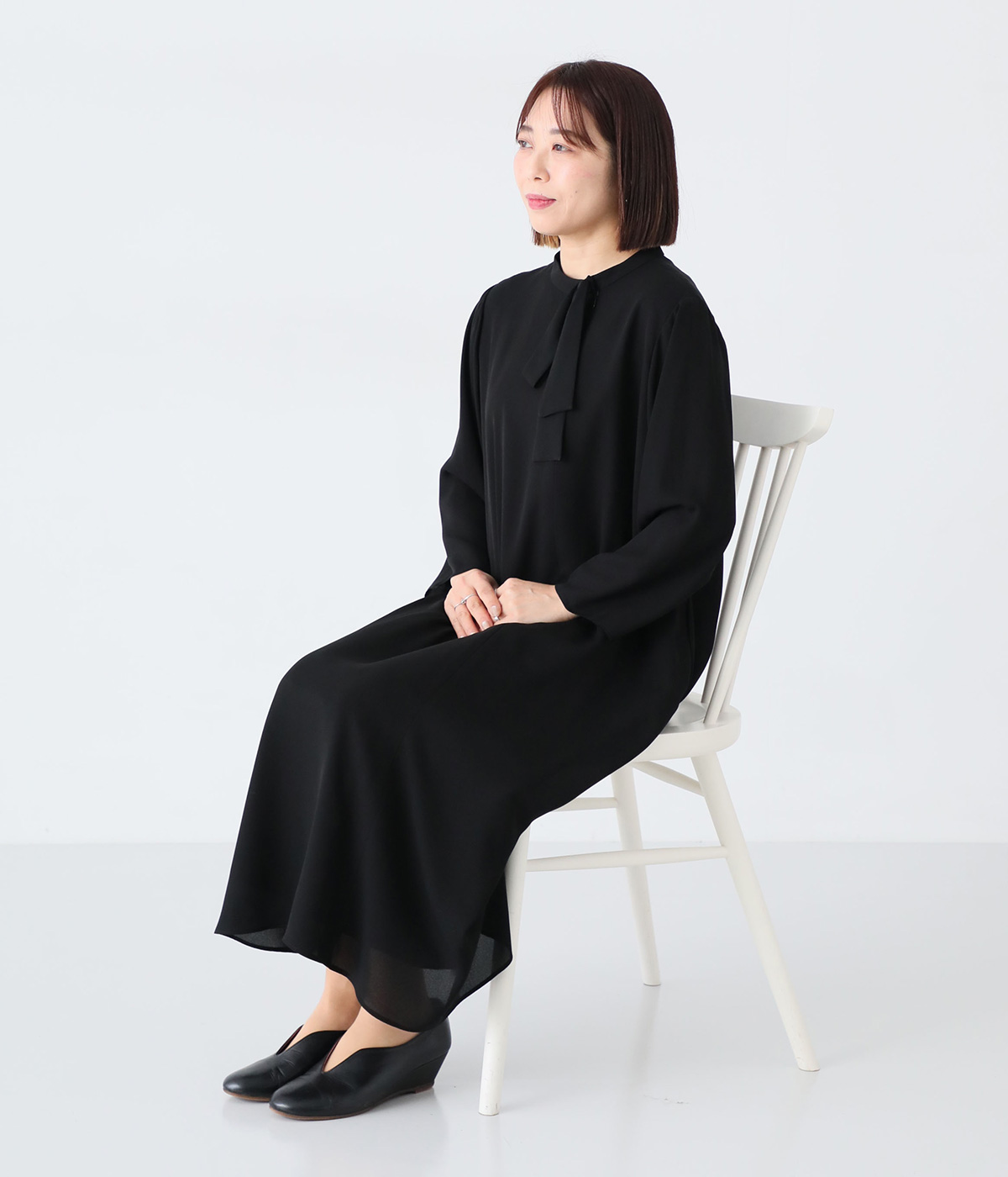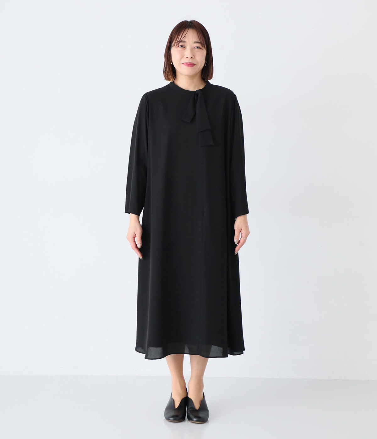 【慶弔両用】大切な日のボウタイAラインワンピース