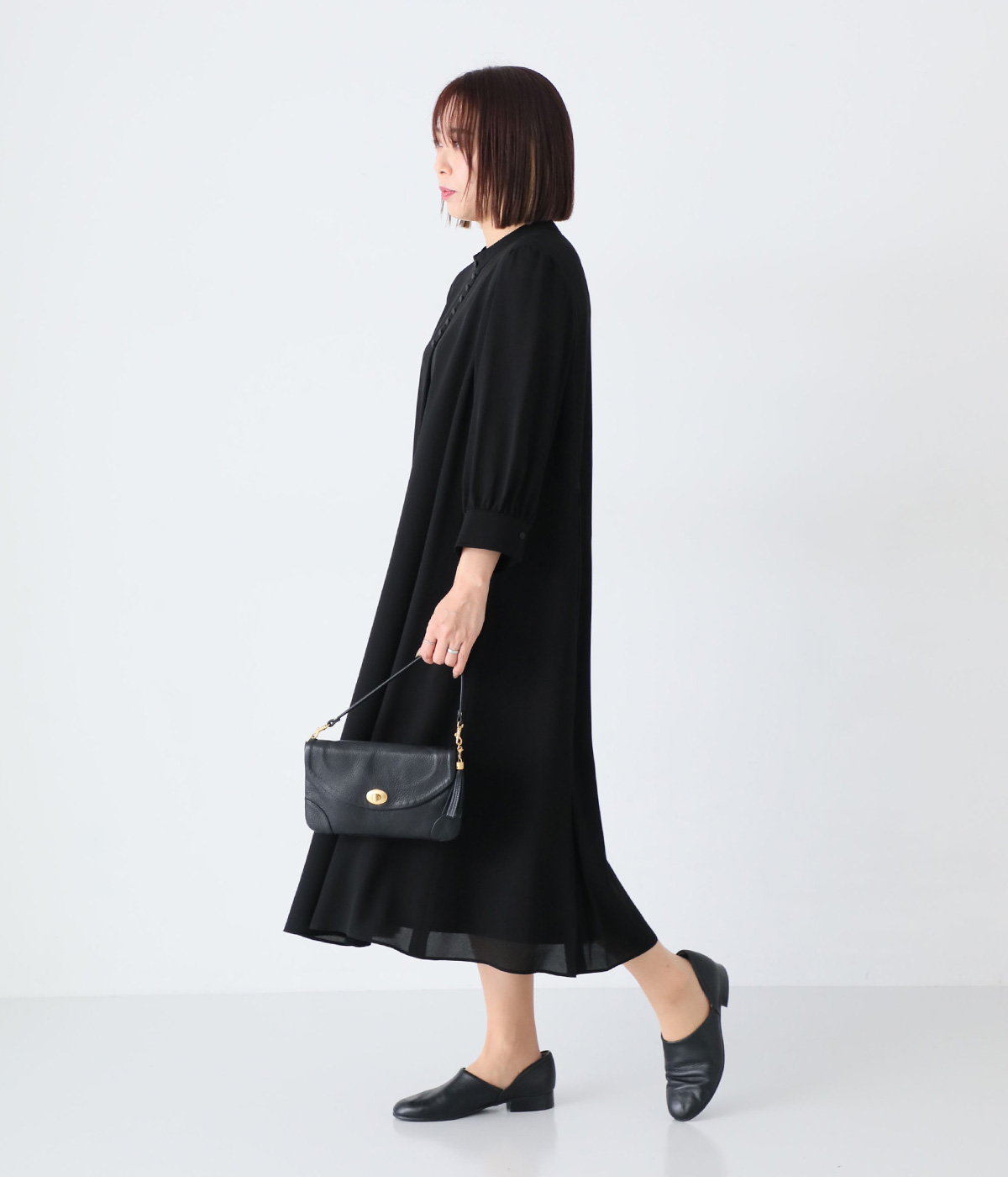 【慶弔両用】大切な日のボタンワンピースの着用コーディネート