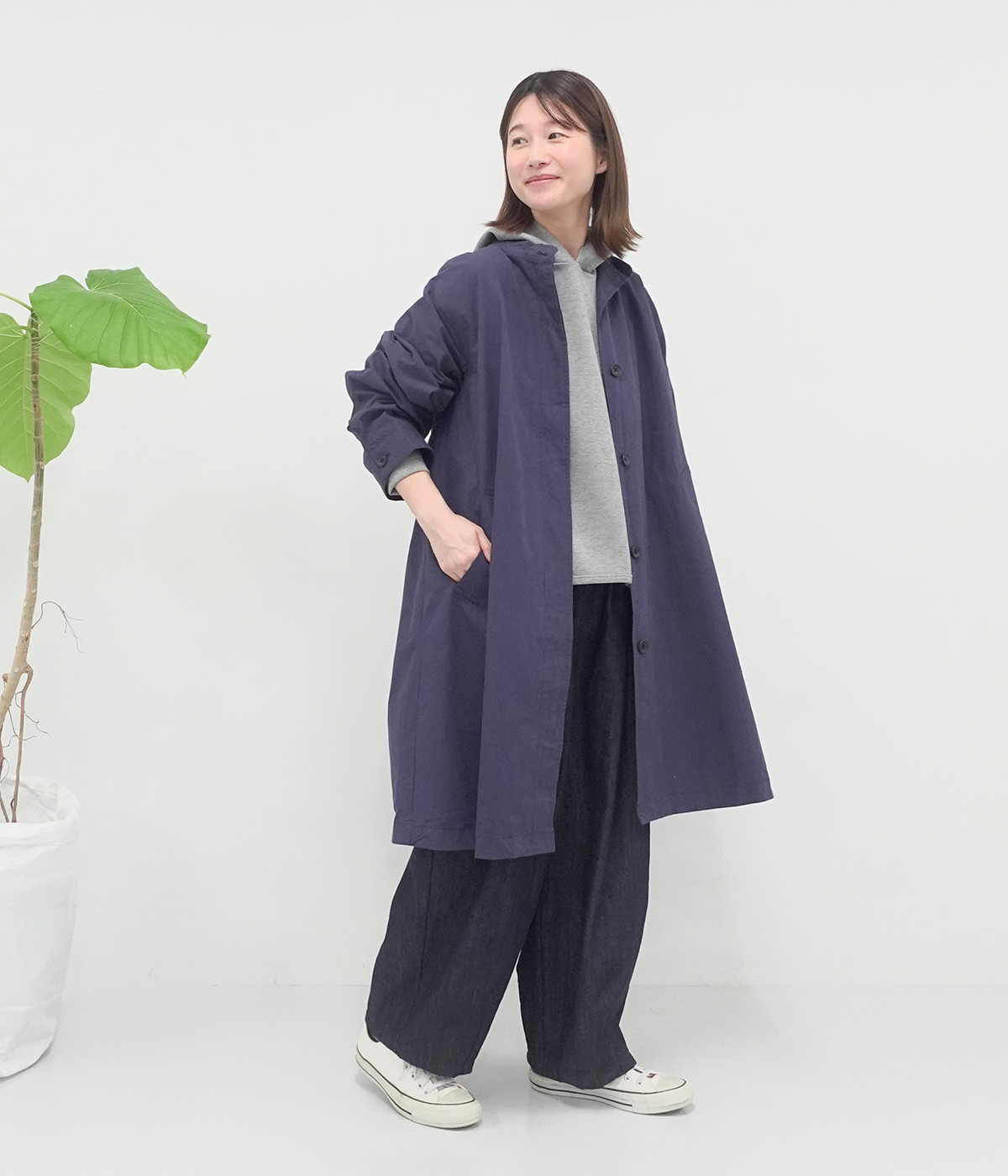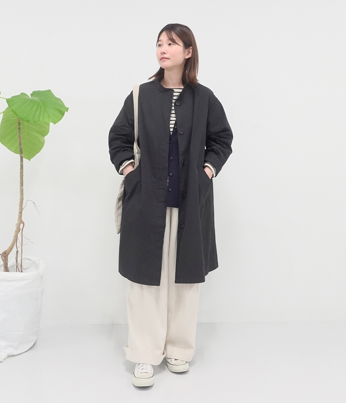 ハイネック比翼ミドル丈コートの着用コーディネート