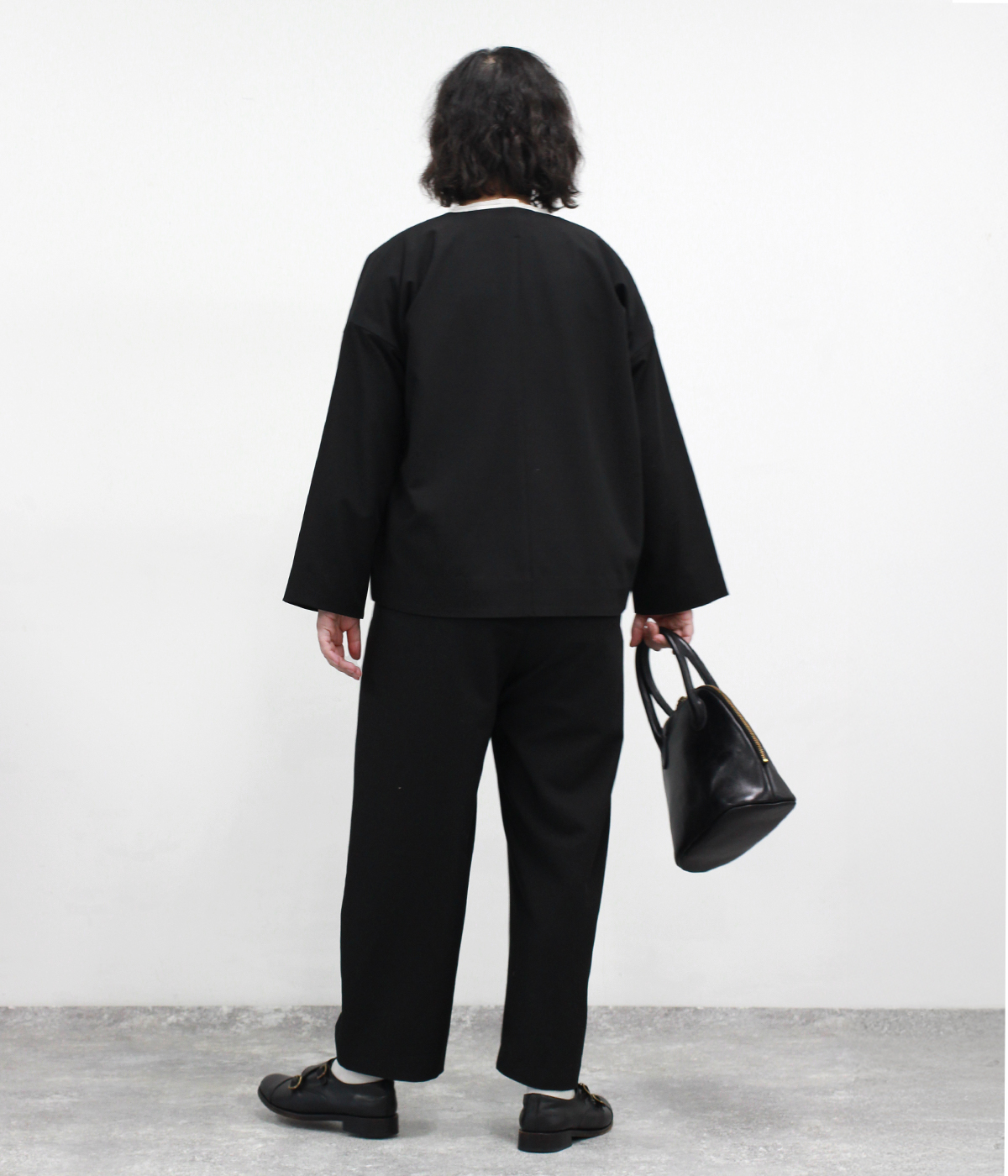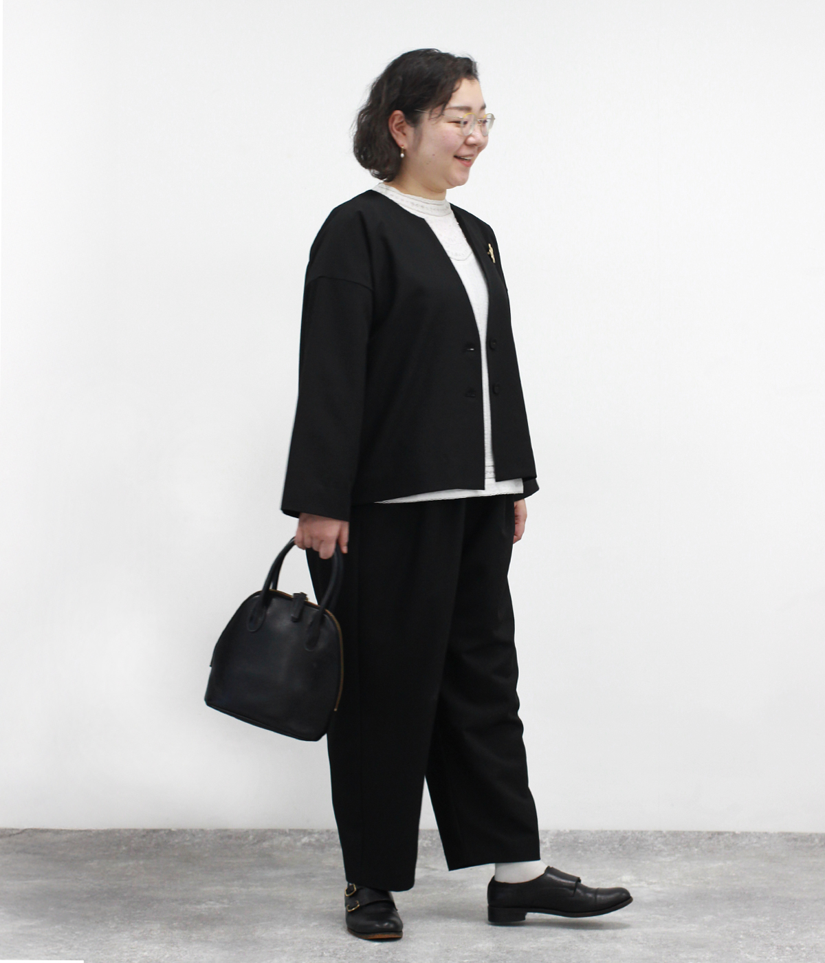 ノーカラージャケットコクーンパンツの着用コーディネート
