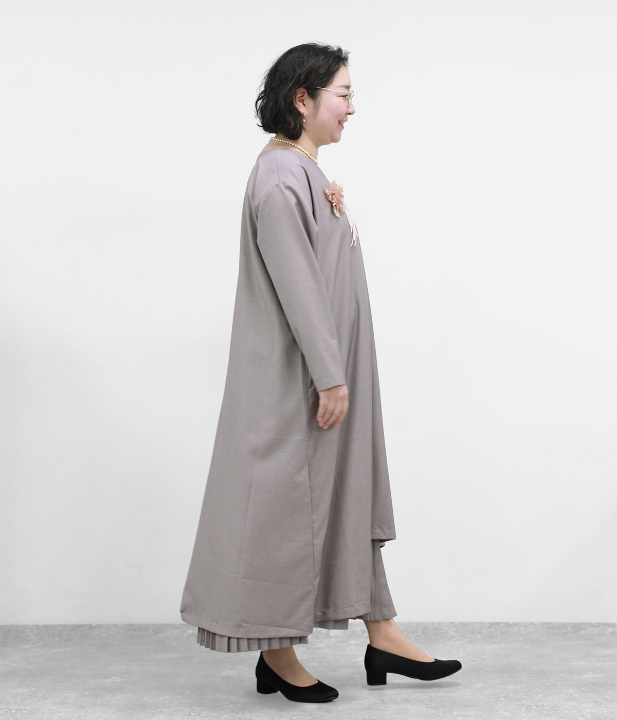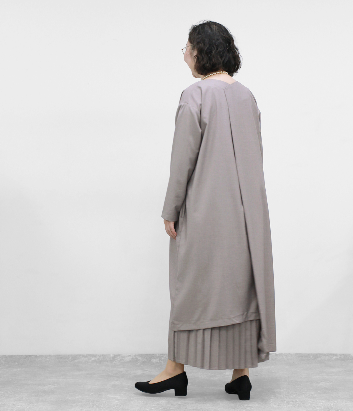 アシンメトリーVネックドレス×プリーツキャミワンピース
