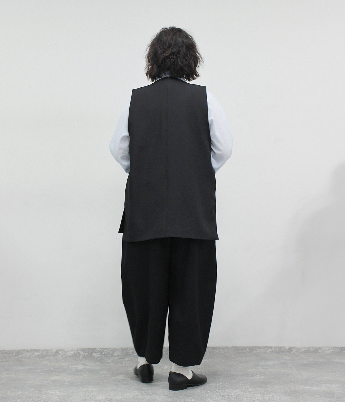 ノーカラージャケットコクーンパンツの着用コーディネート