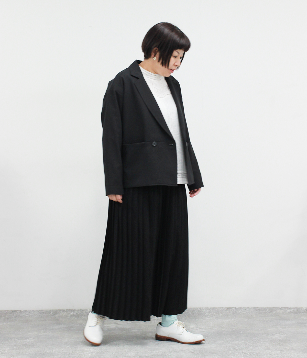 一部別注|リネン切替ペプラムジャケットの着用コーディネート