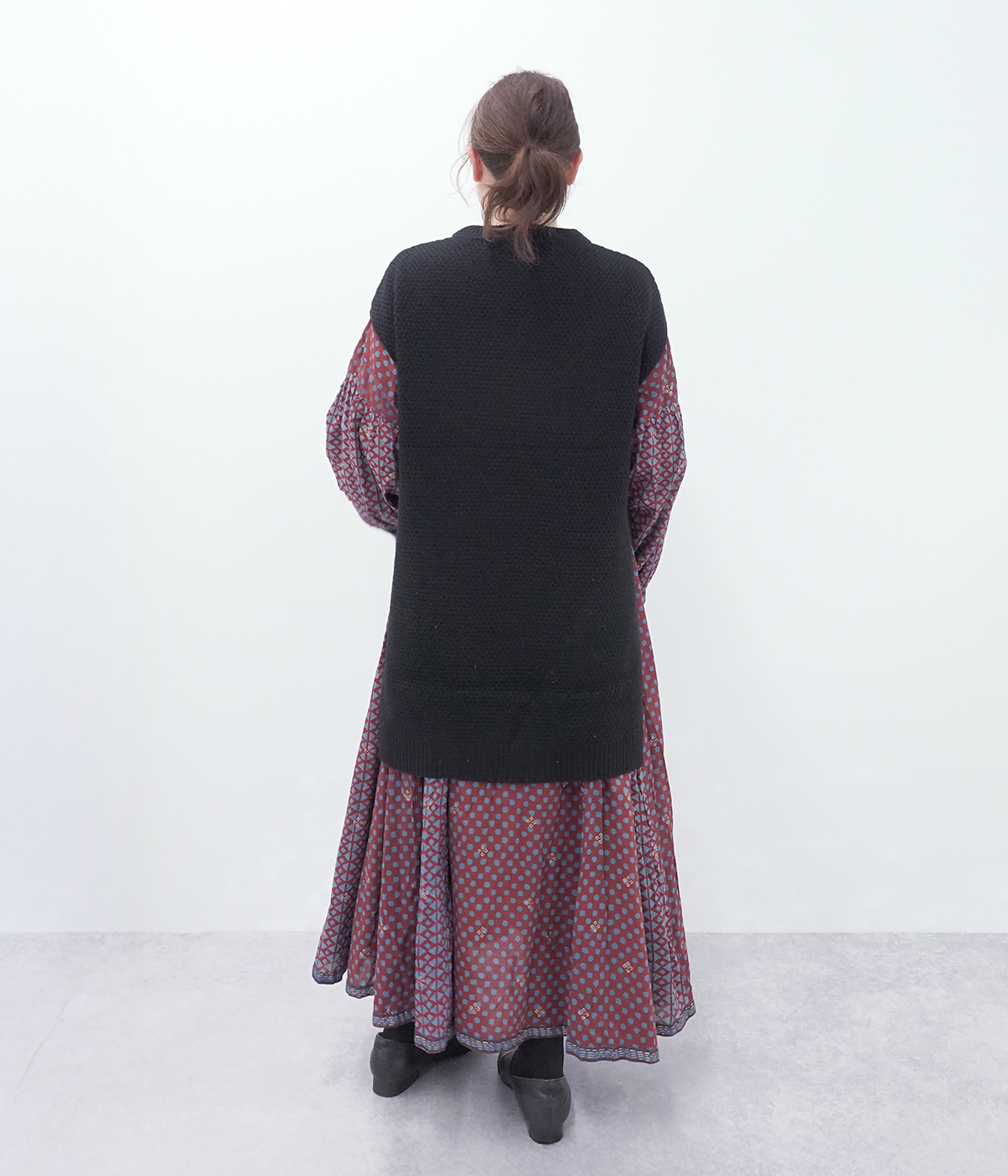 9番手リネンアシンメトリー切り替えワンピースの着用コーディネート