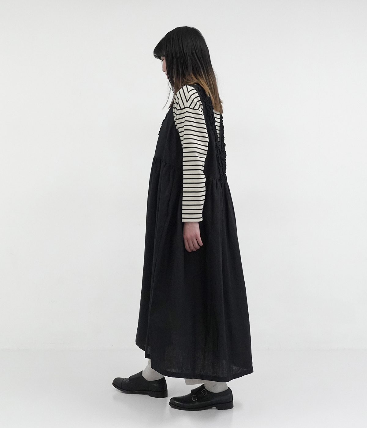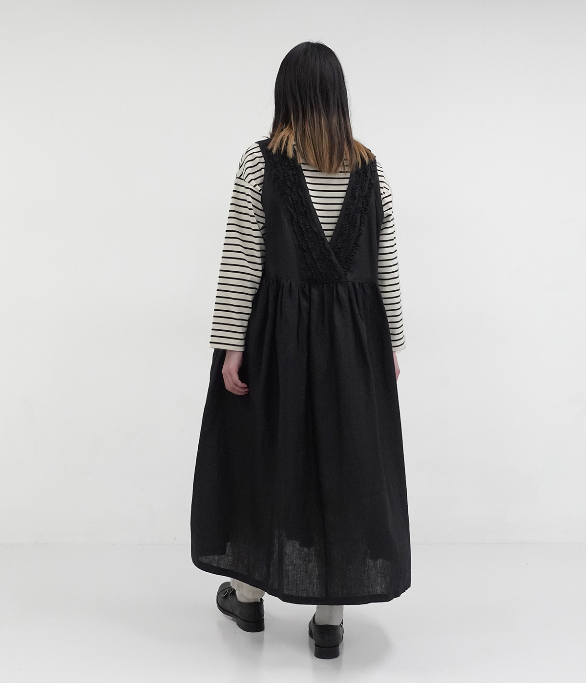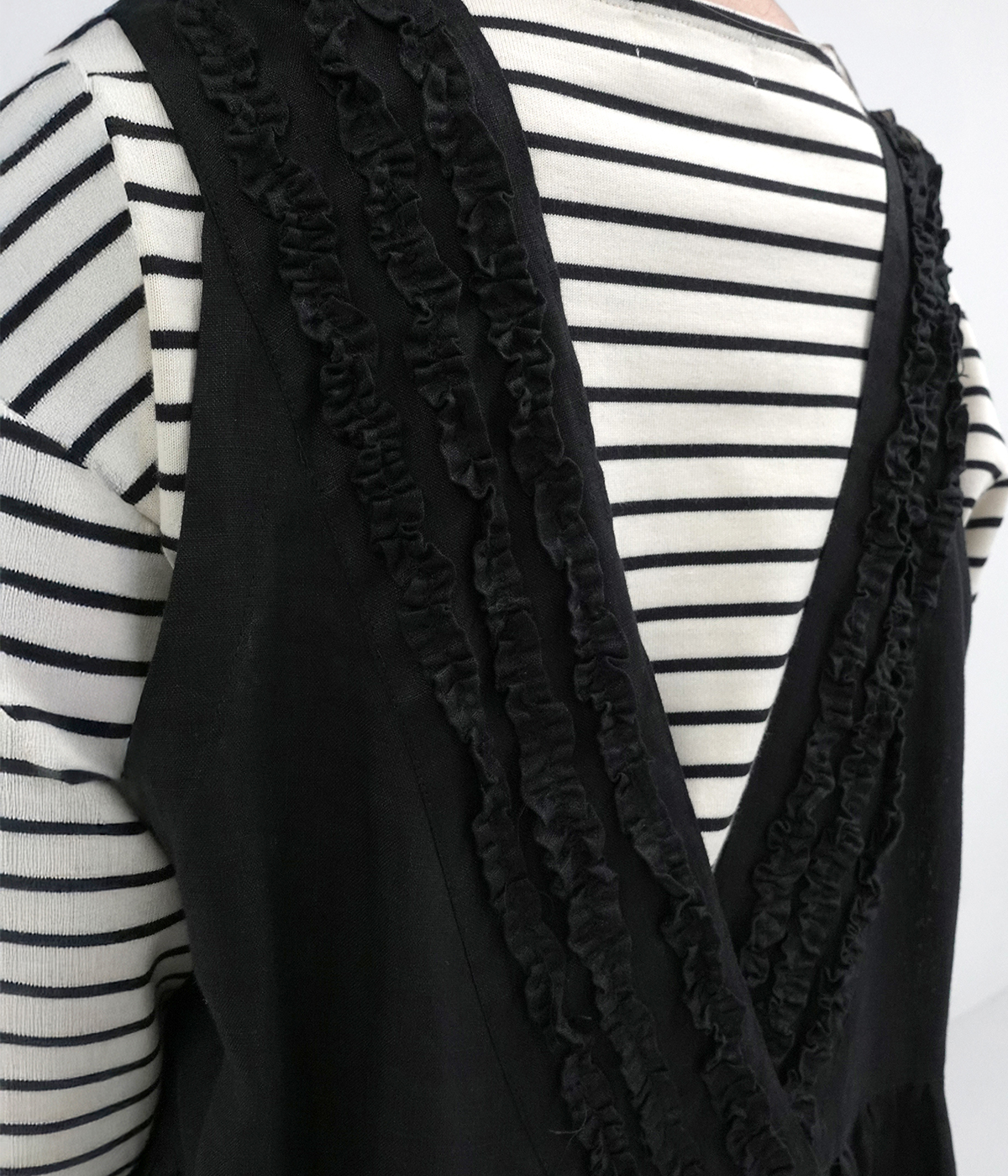 14番手洗いざらしリネン無地前後フリル使い2wayノースリー...