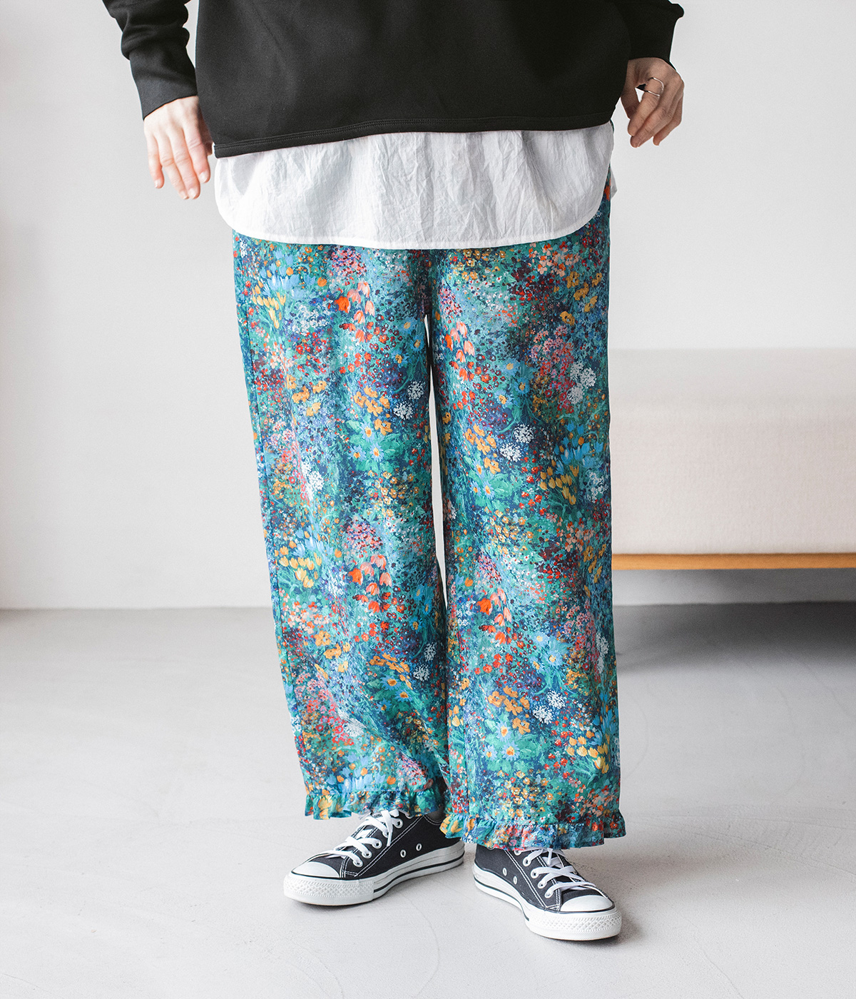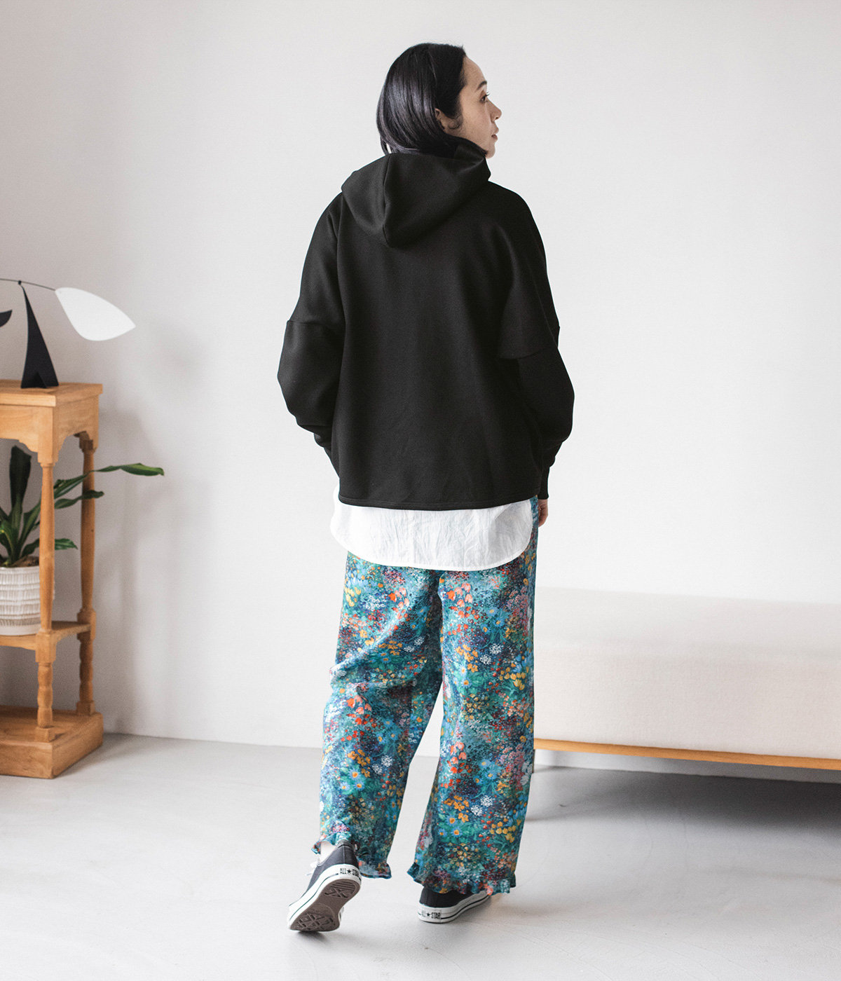 リバティ・ファブリックスネコ柄ブラウスの着用コーディネート