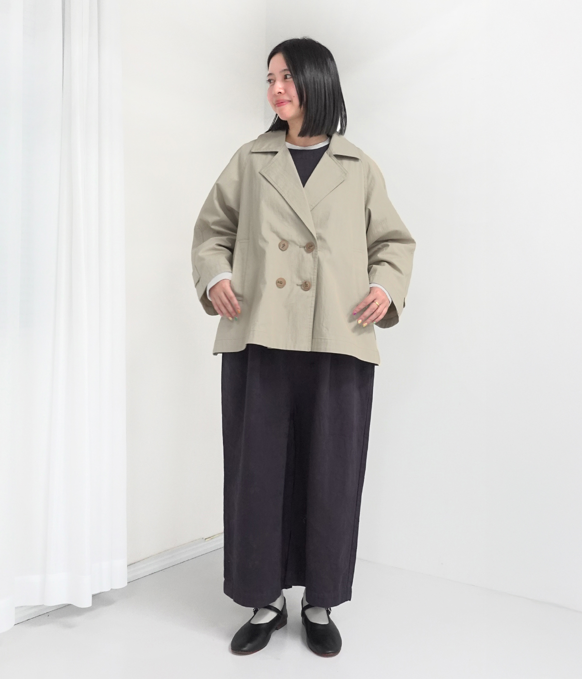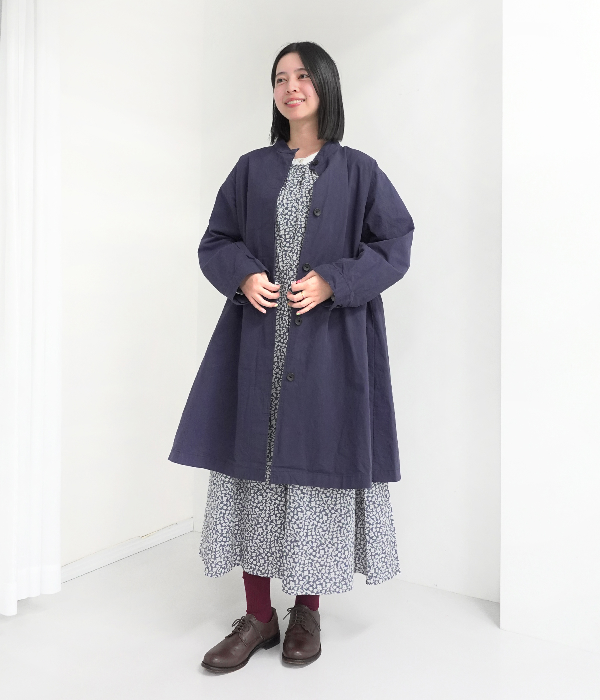 別注|ハイネック比翼ミドル丈コートの着用コーディネート
