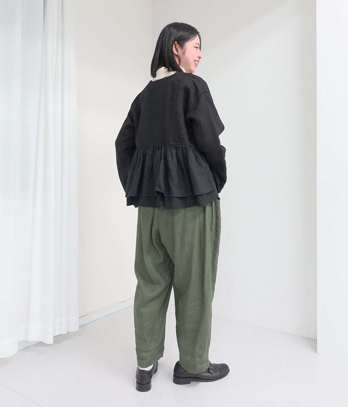 一部別注|リネン切替ペプラムジャケット