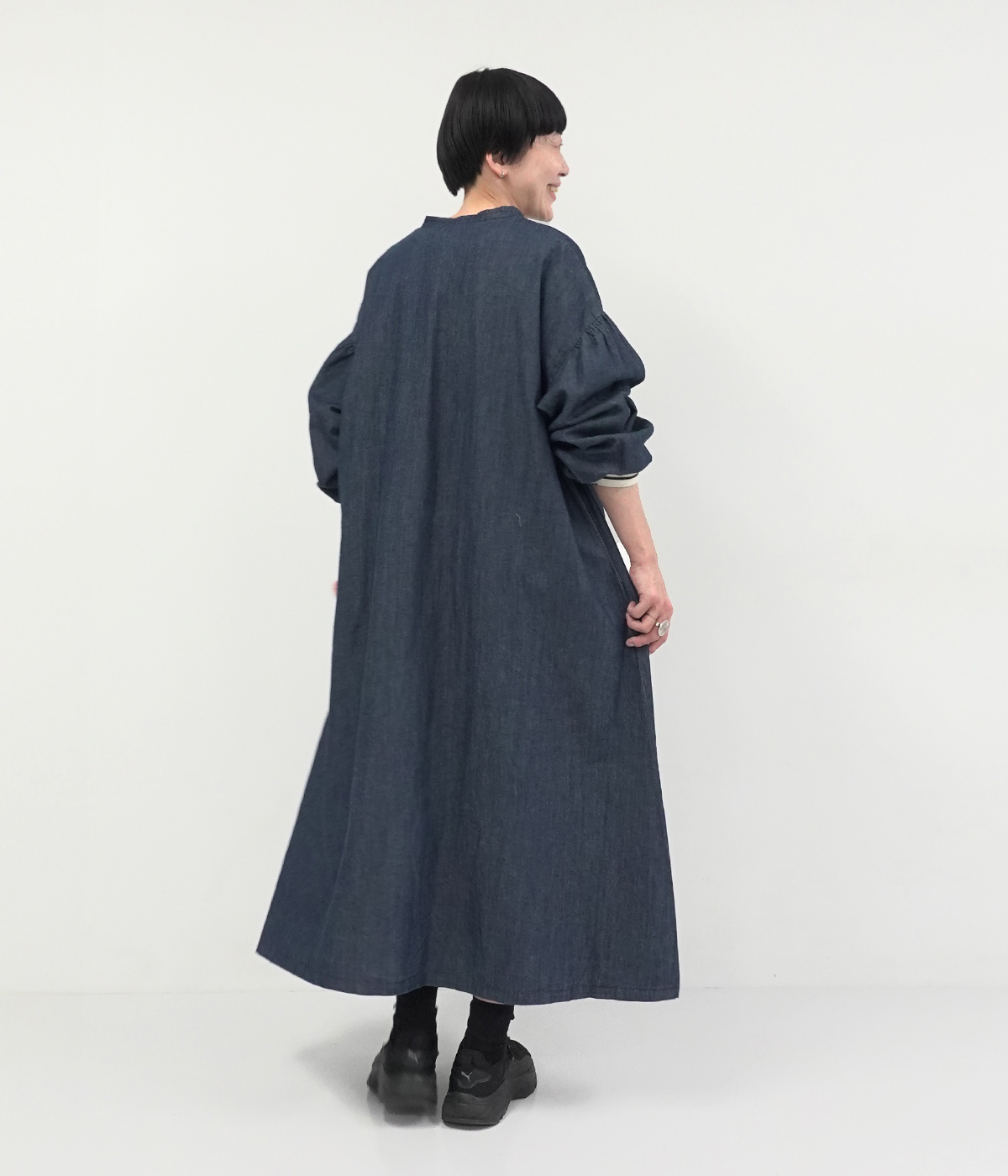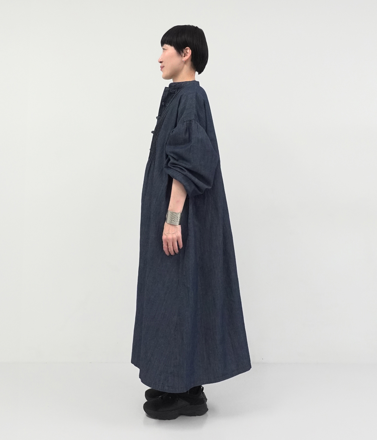 一部別注|コットンリネンデニム チャイナボタンワンピース