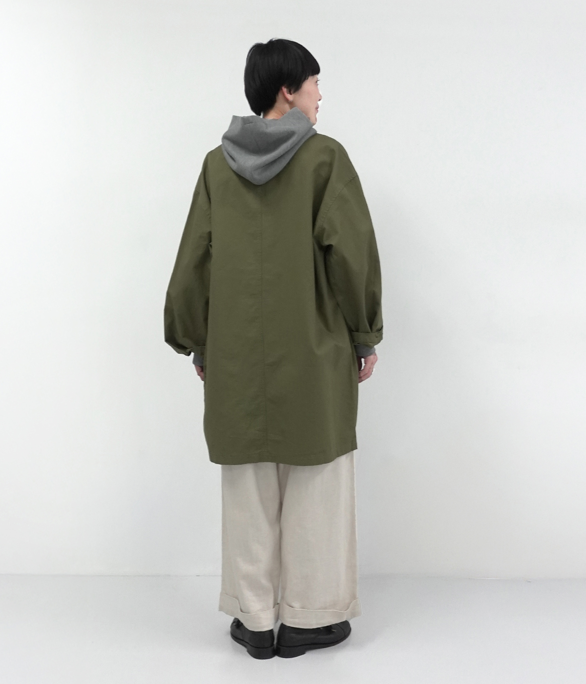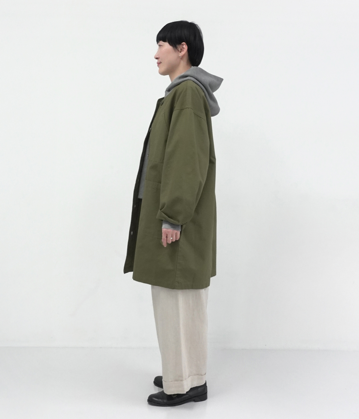 一部別注|コットンリネンデニム チャイナボタンワンピースの着用コーディネート