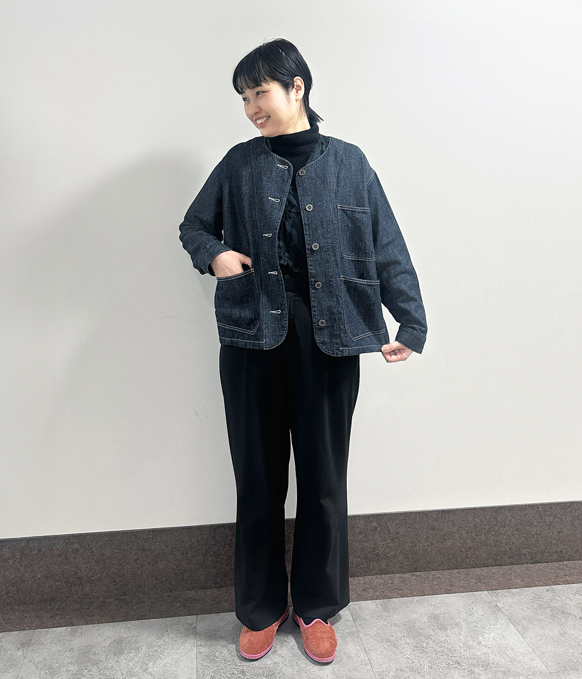 コットンリネンデニムワークジャケットの着用コーディネート