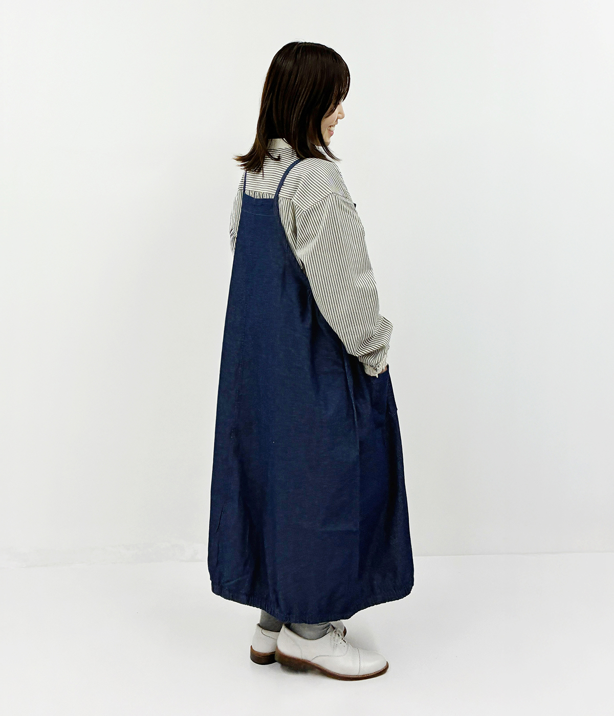 5.4oz布帛デニムエプロンバルーンワンピース