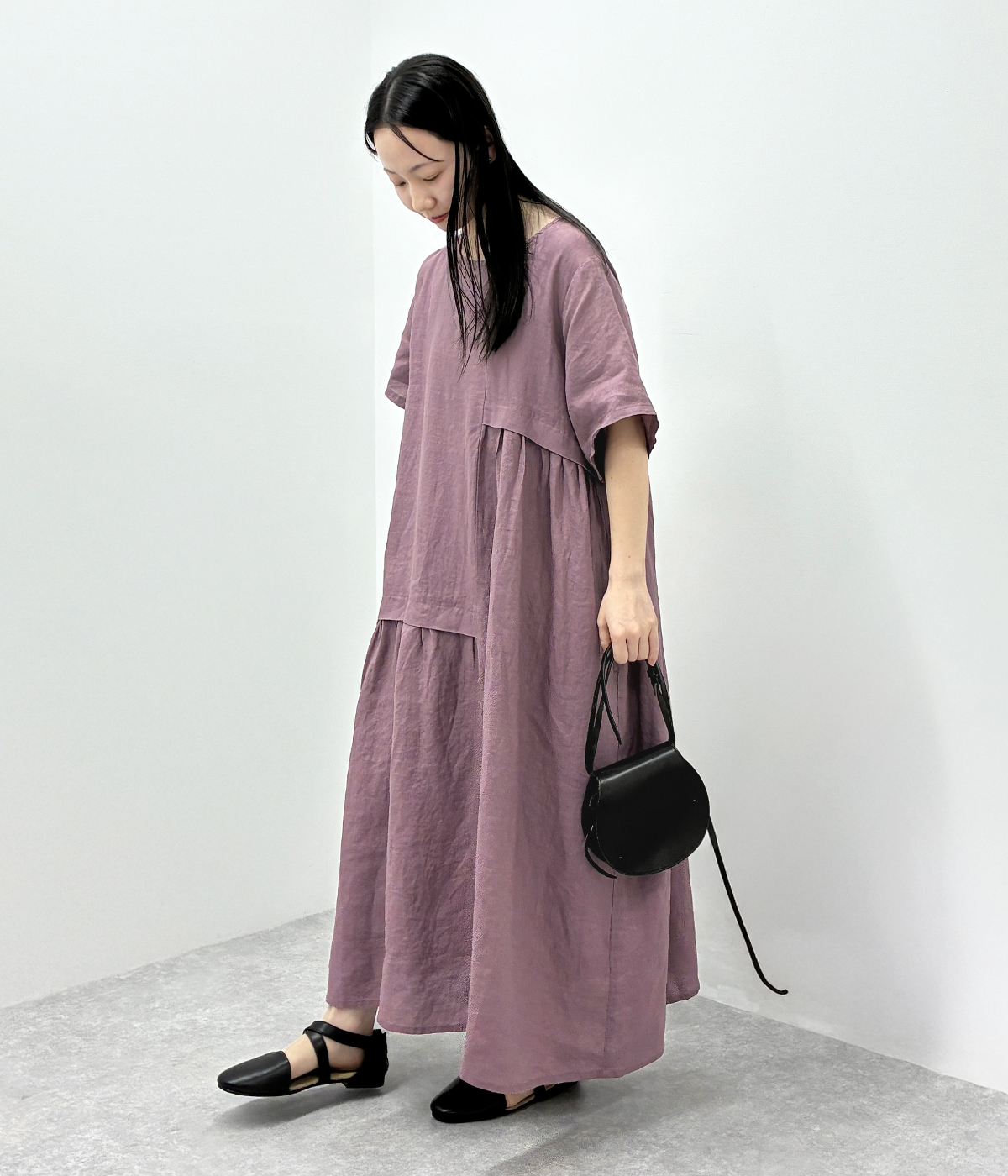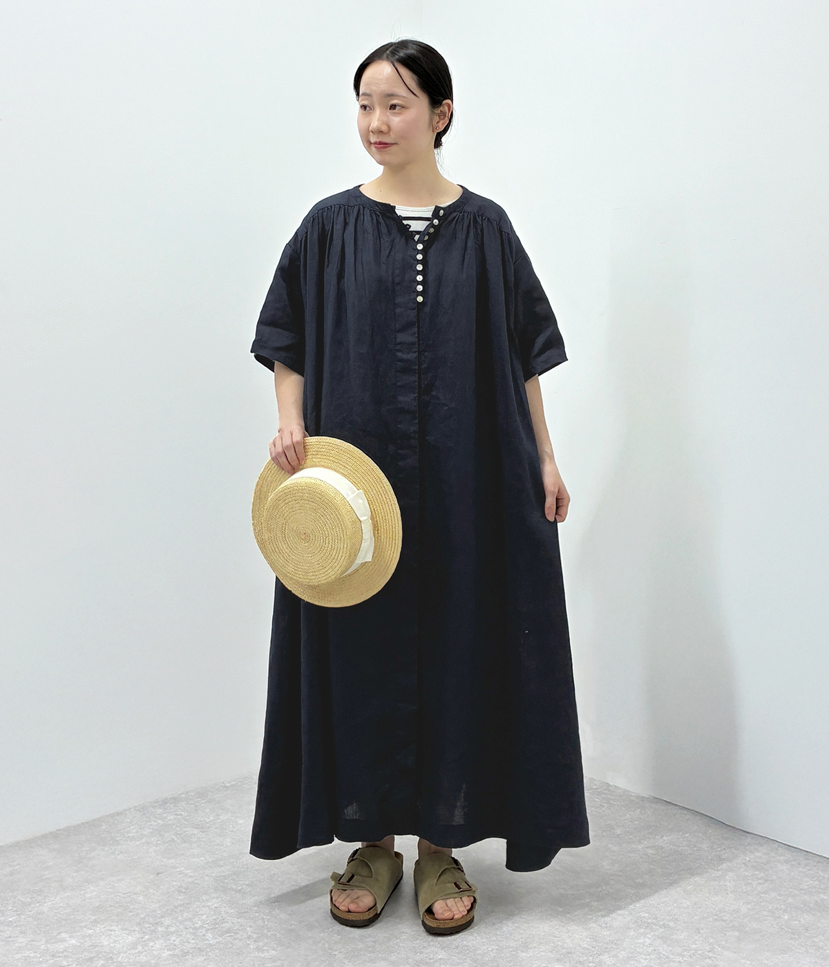 トップス:S~L、ボトムス:S~M、シューズ:22.5~23cm シンプル、ナチュラル、カジュアル、ゆったりが好きで、ワンピース、パンツスタイル、ベーシックカラーが多いです。背が低いのでかわいいと思っても着れない服が多いのが悩みです。