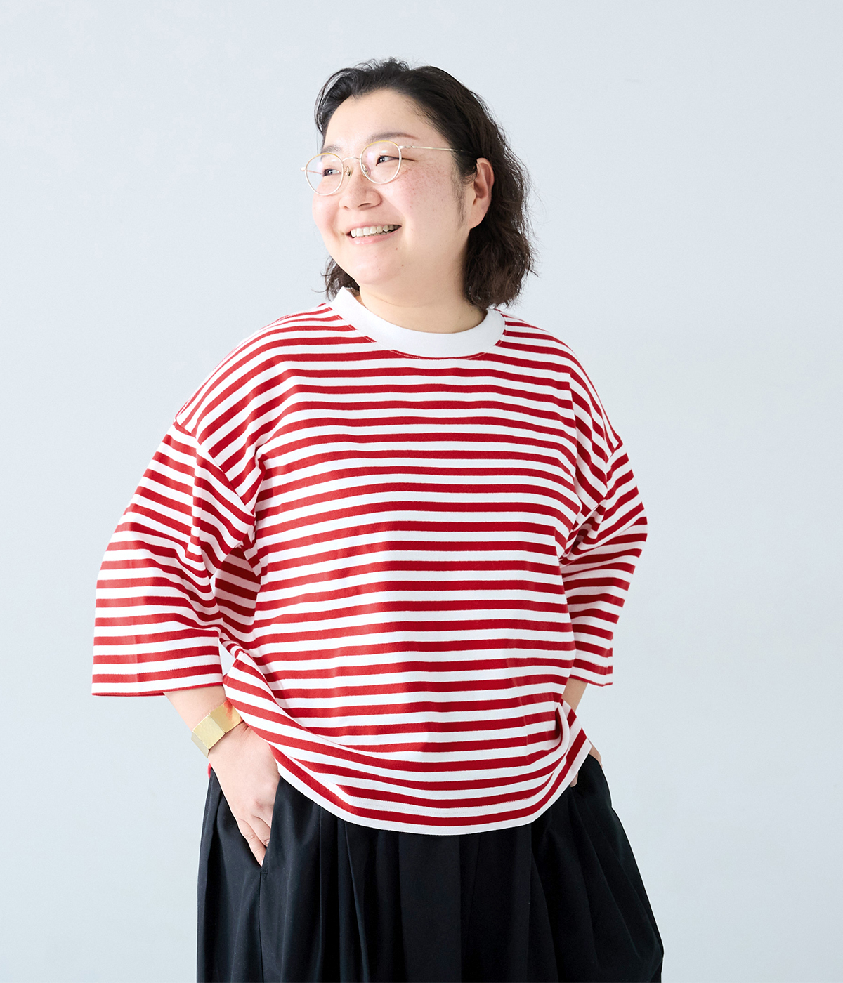 nop de nod、ista-ire、ubasokuなどバイイング担当。トップス:MかL(ものもよる)、ボトムス:L、シューズ:23.5~24cmシンプル、ゆったり。肩幅がせまくてなで肩