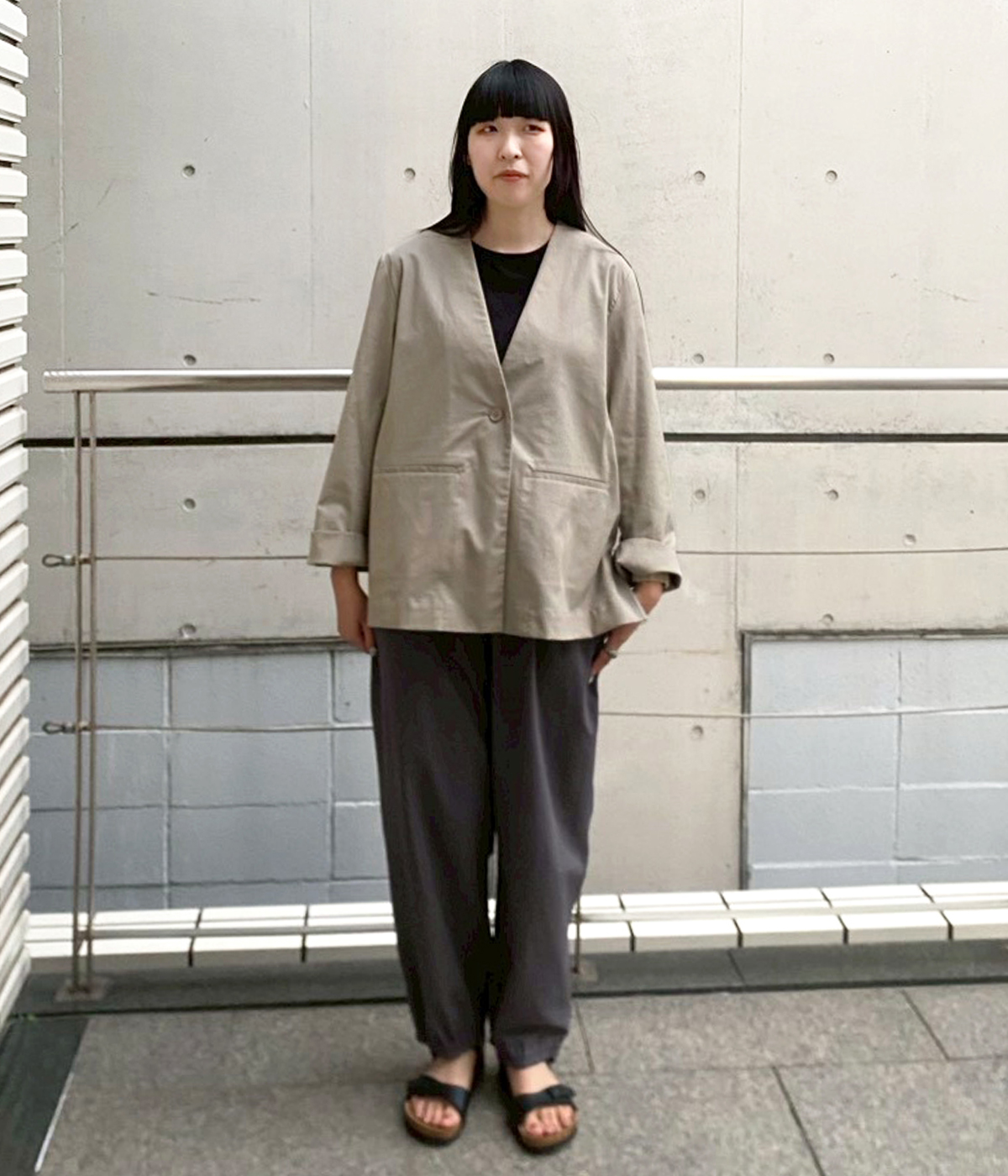 リネンコットンノーカラージャケット