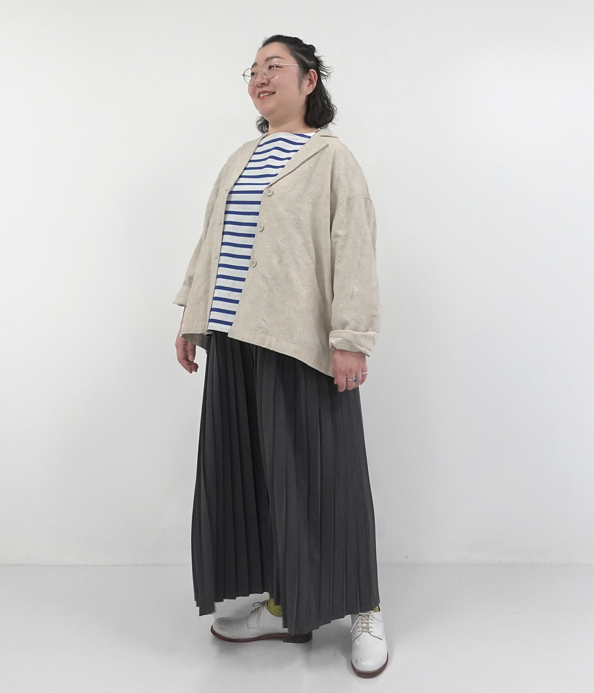 nop de nod、ista-ire、ubasokuなどバイイング担当。トップス:MかL(ものもよる)、ボトムス:L、シューズ:23.5~24cmシンプル、ゆったり。肩幅がせまくてなで肩