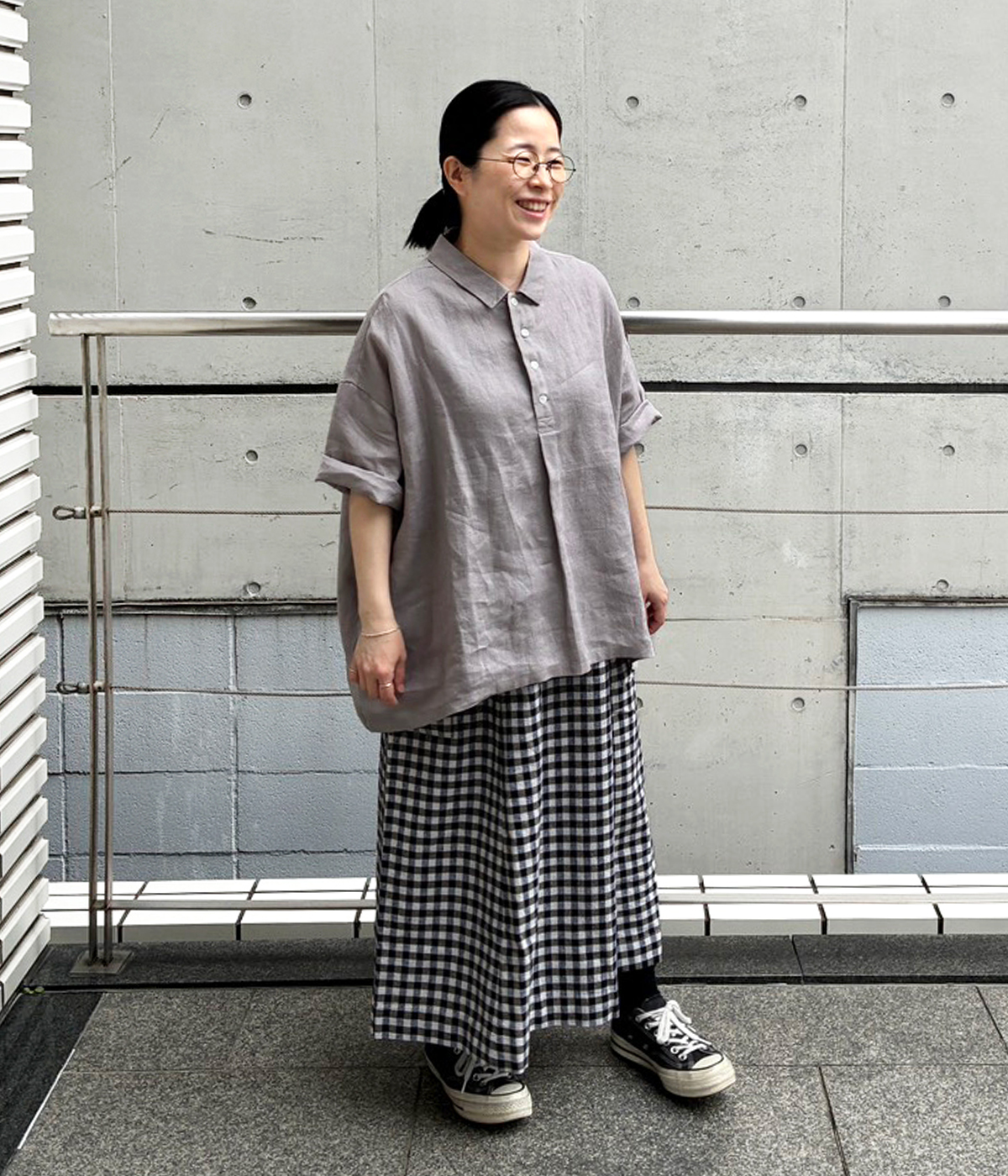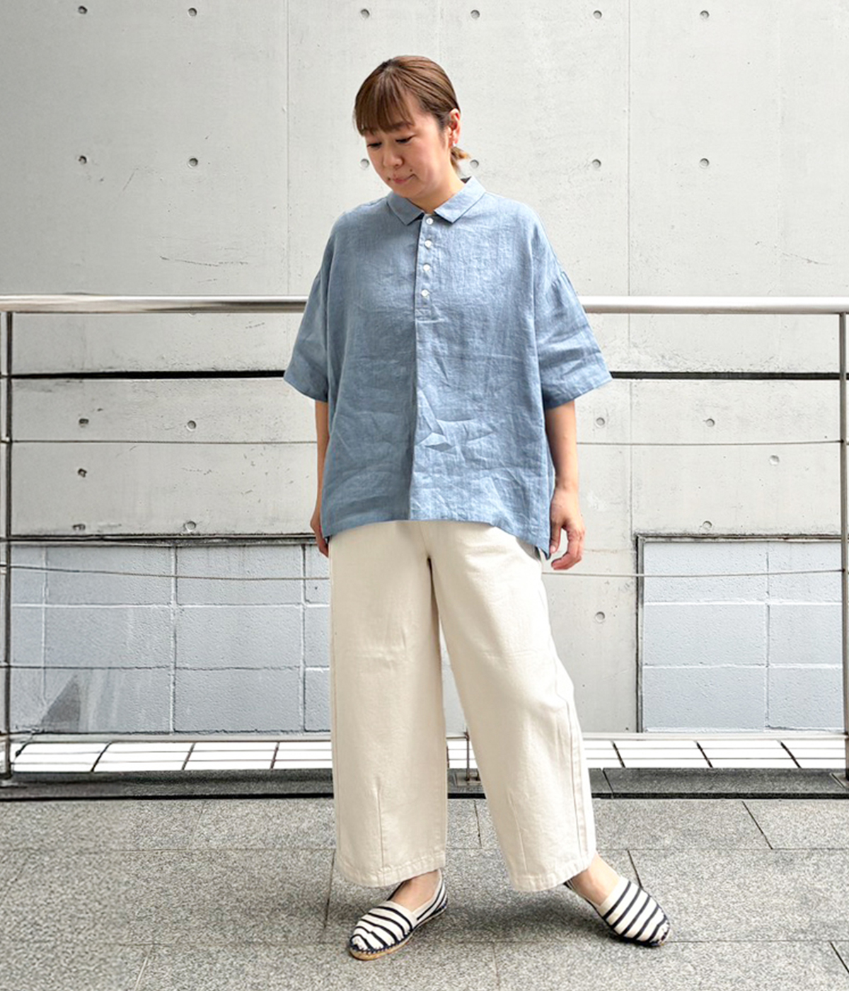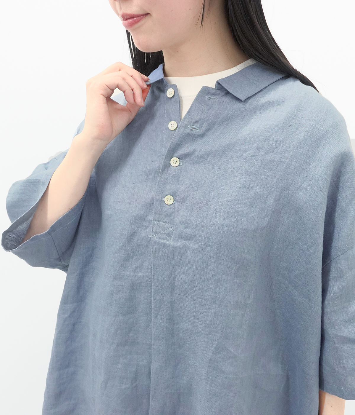 別注|14番手リネン多ボタンギャザーワンピースの着用コーディネート