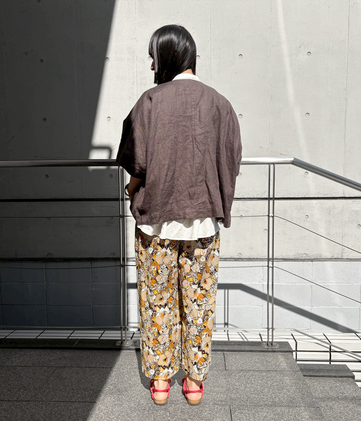 リネンコットンノーカラージャケットの着用コーディネート