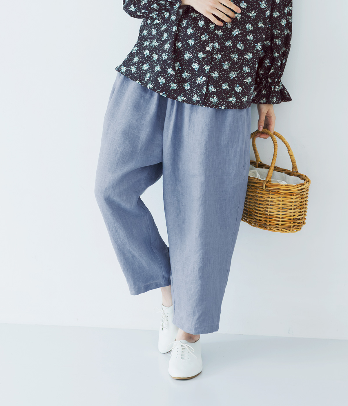 平織リネンよくばりパンツの着用コーディネート