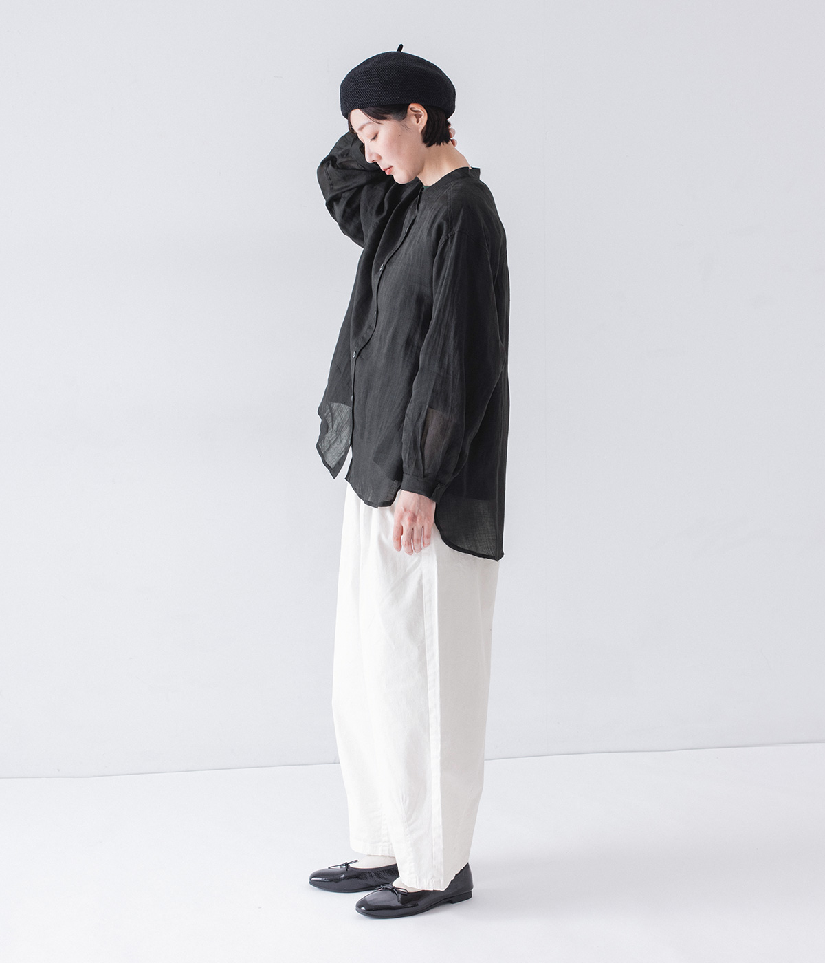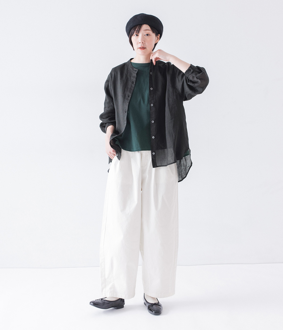 シアーリネンバンドカラーブラウスの着用コーディネート