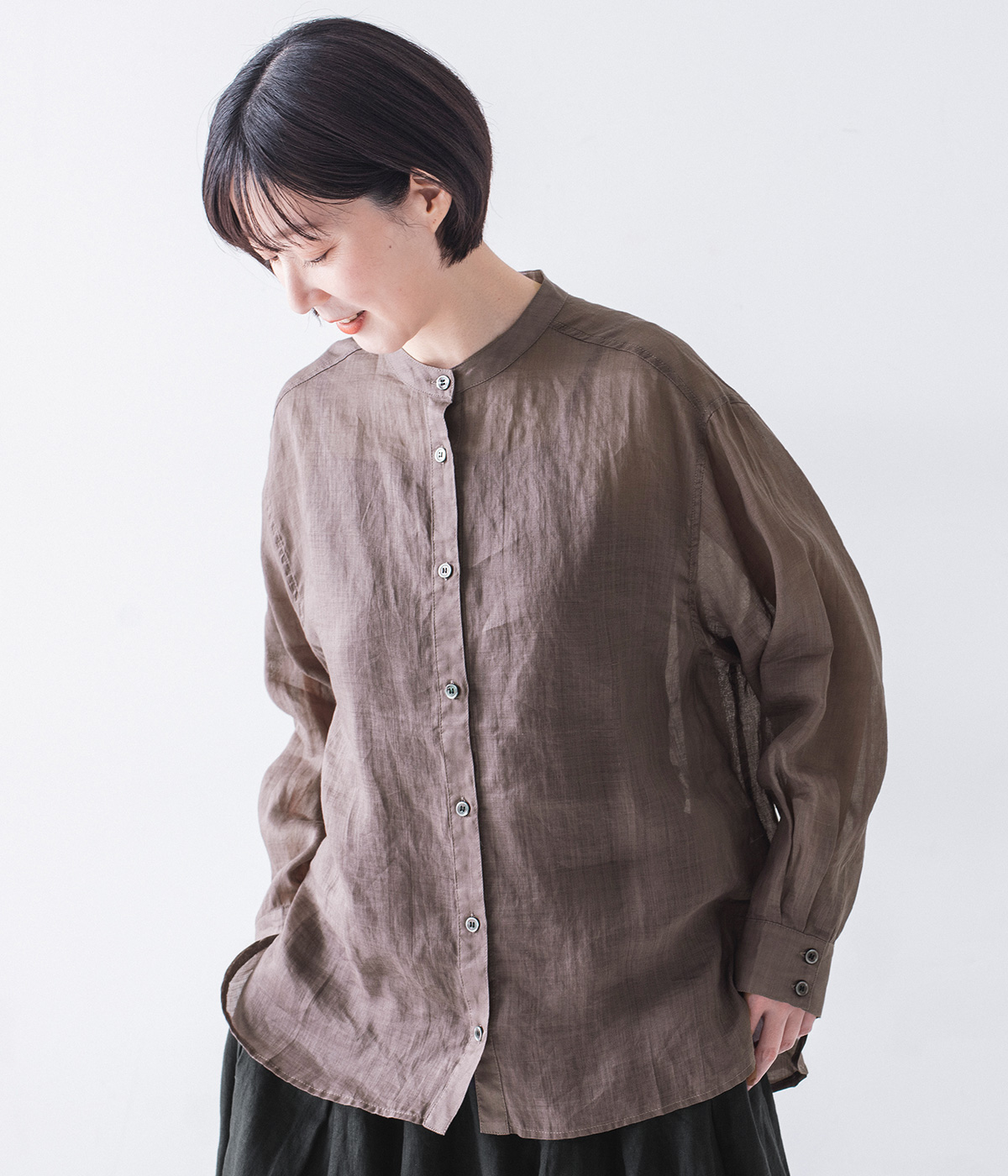 シアーリネンバンドカラーブラウスの着用コーディネート