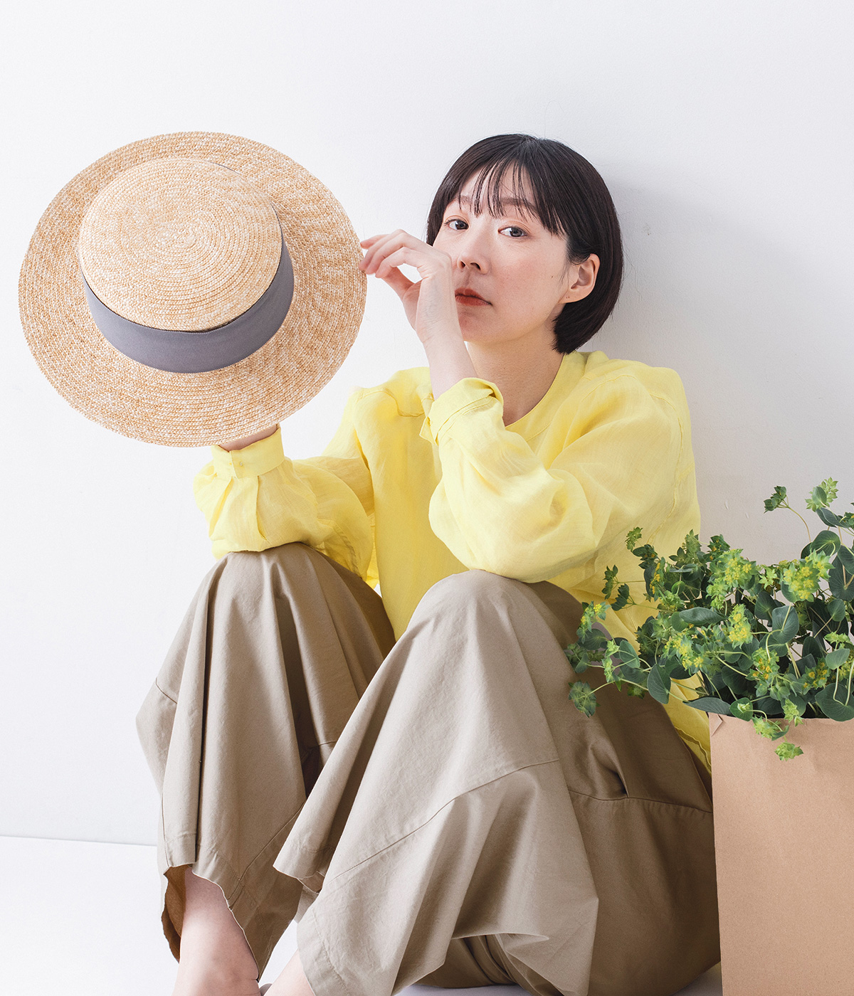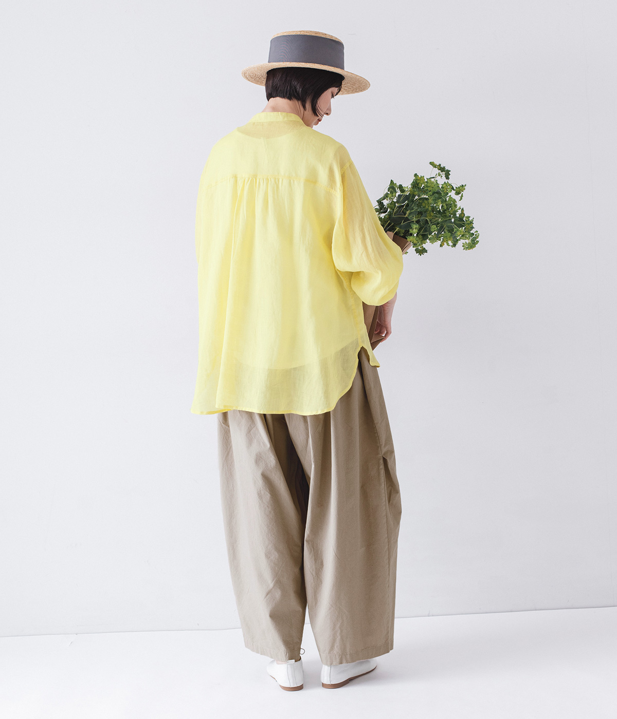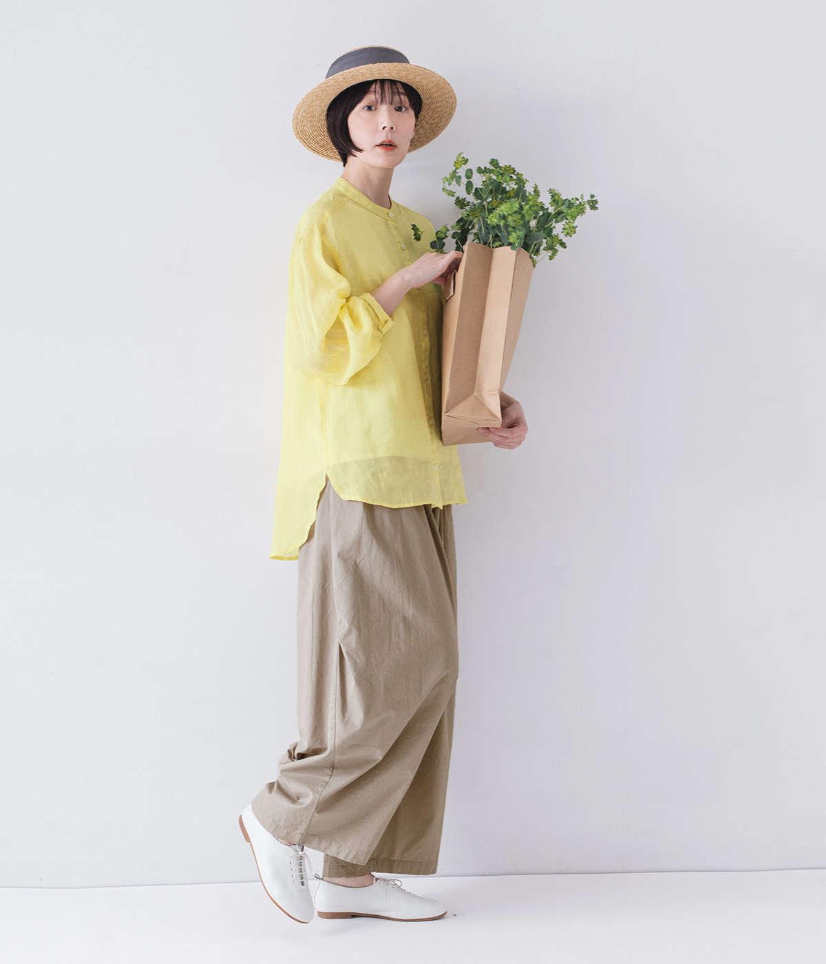 シアーリネンバンドカラーブラウスの着用コーディネート
