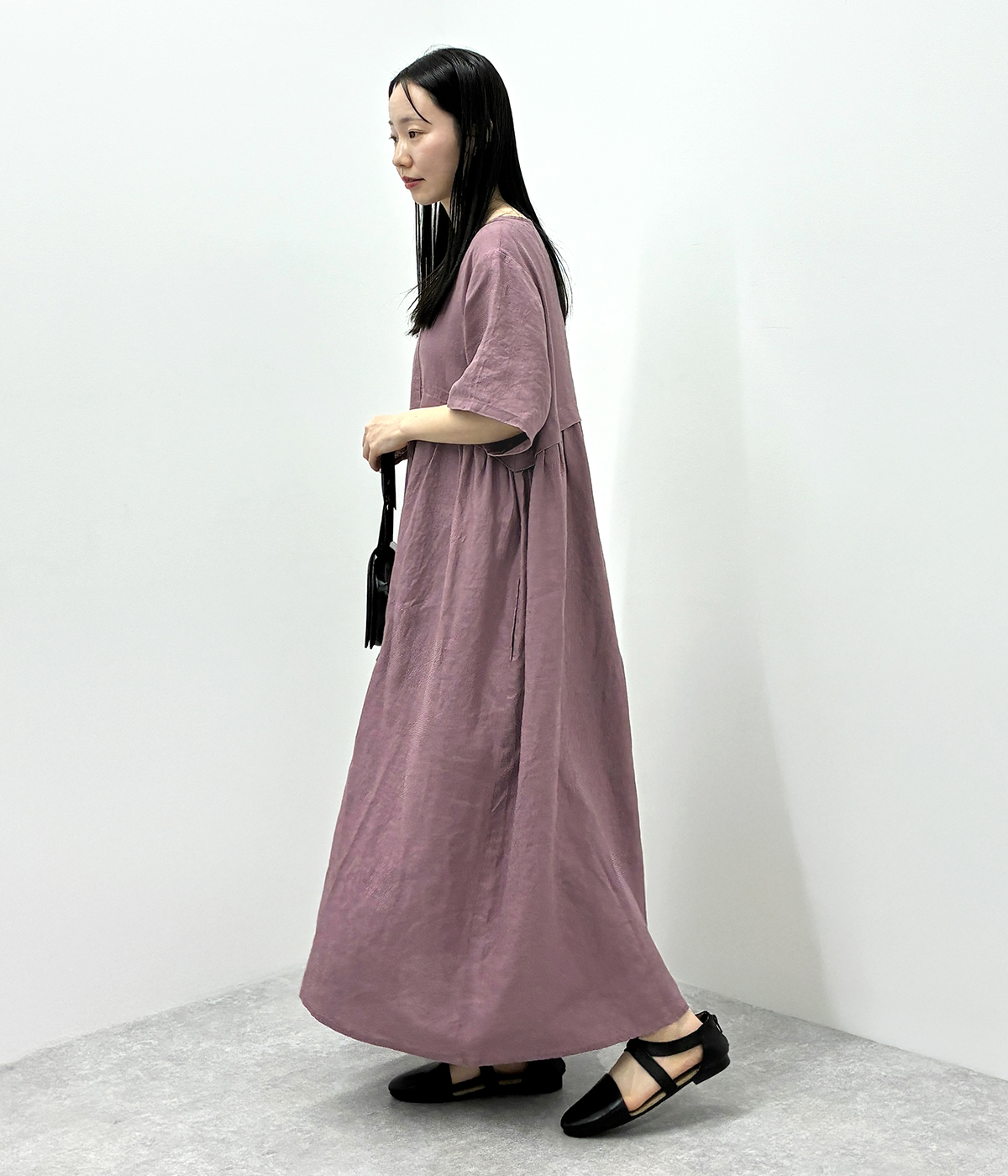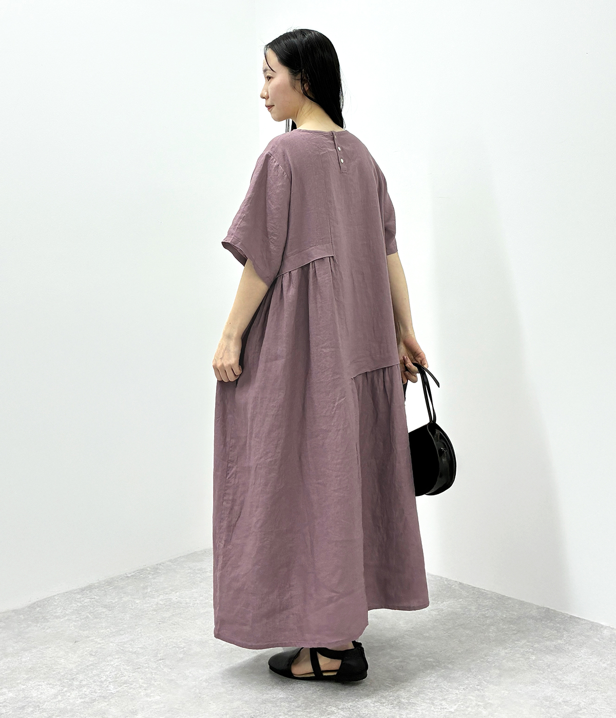 別注|14番手リネン多ボタンギャザーワンピースの着用コーディネート