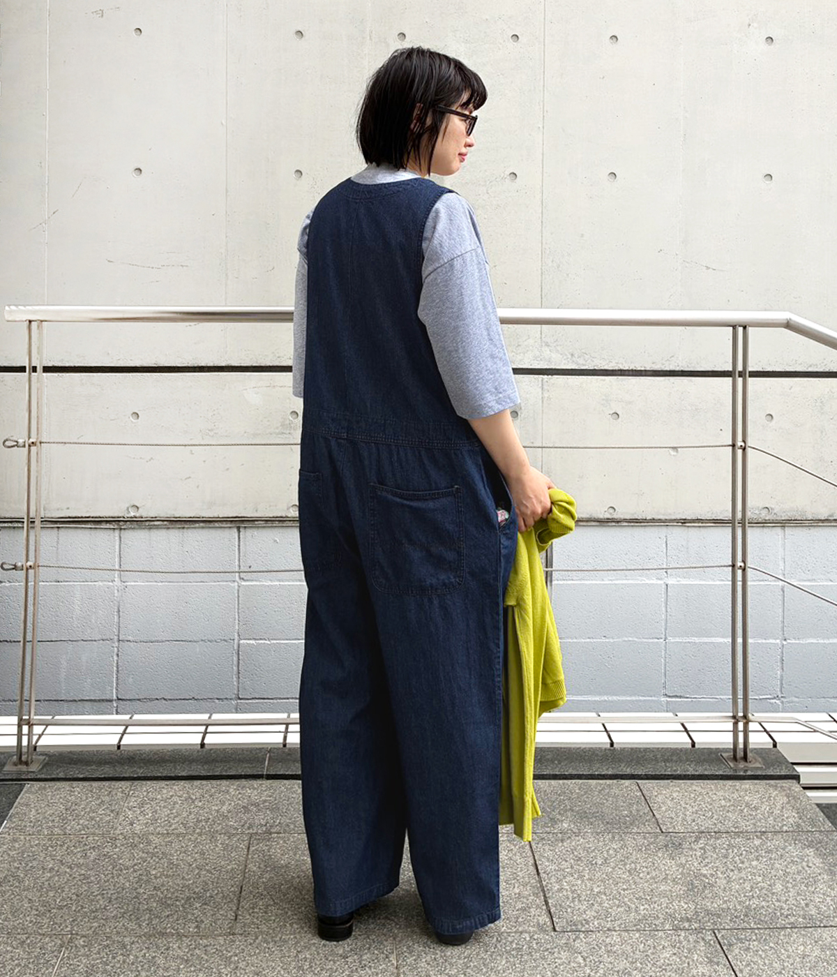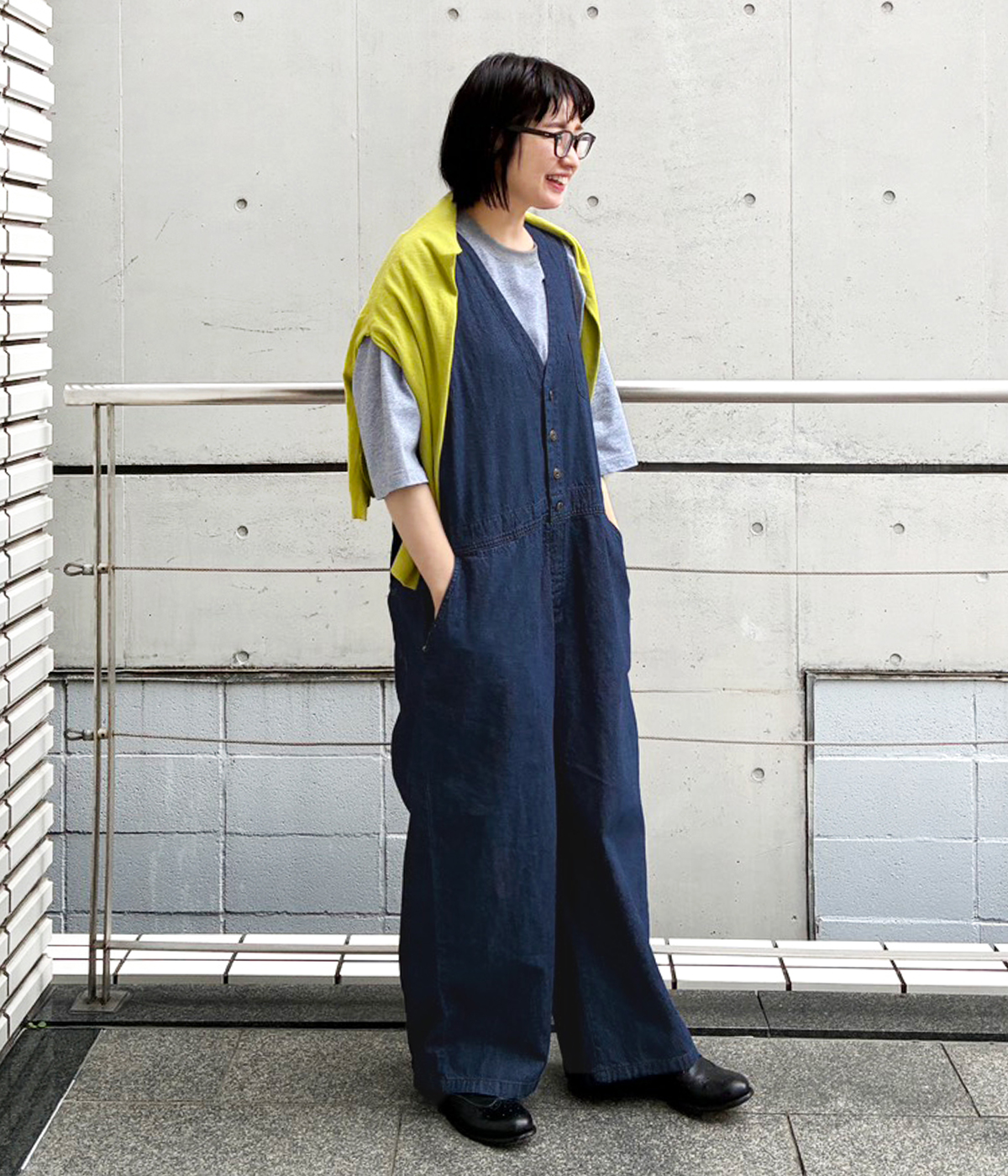 デニムオーバーオールの着用コーディネート