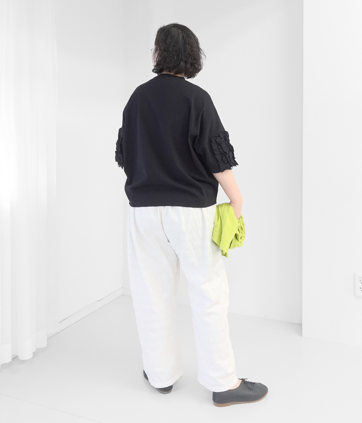 コットンリネン袖リブプルオーバーブラウスの着用コーディネート