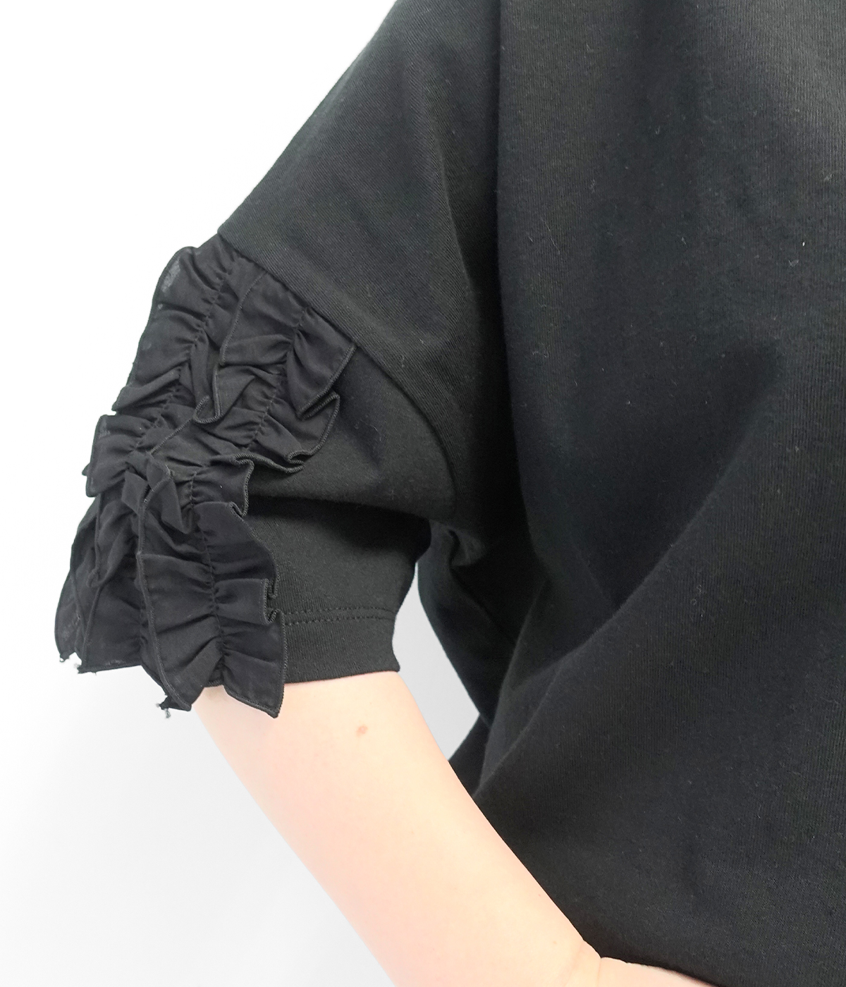 着るだけでサマになる フリル5分袖Tシャツ