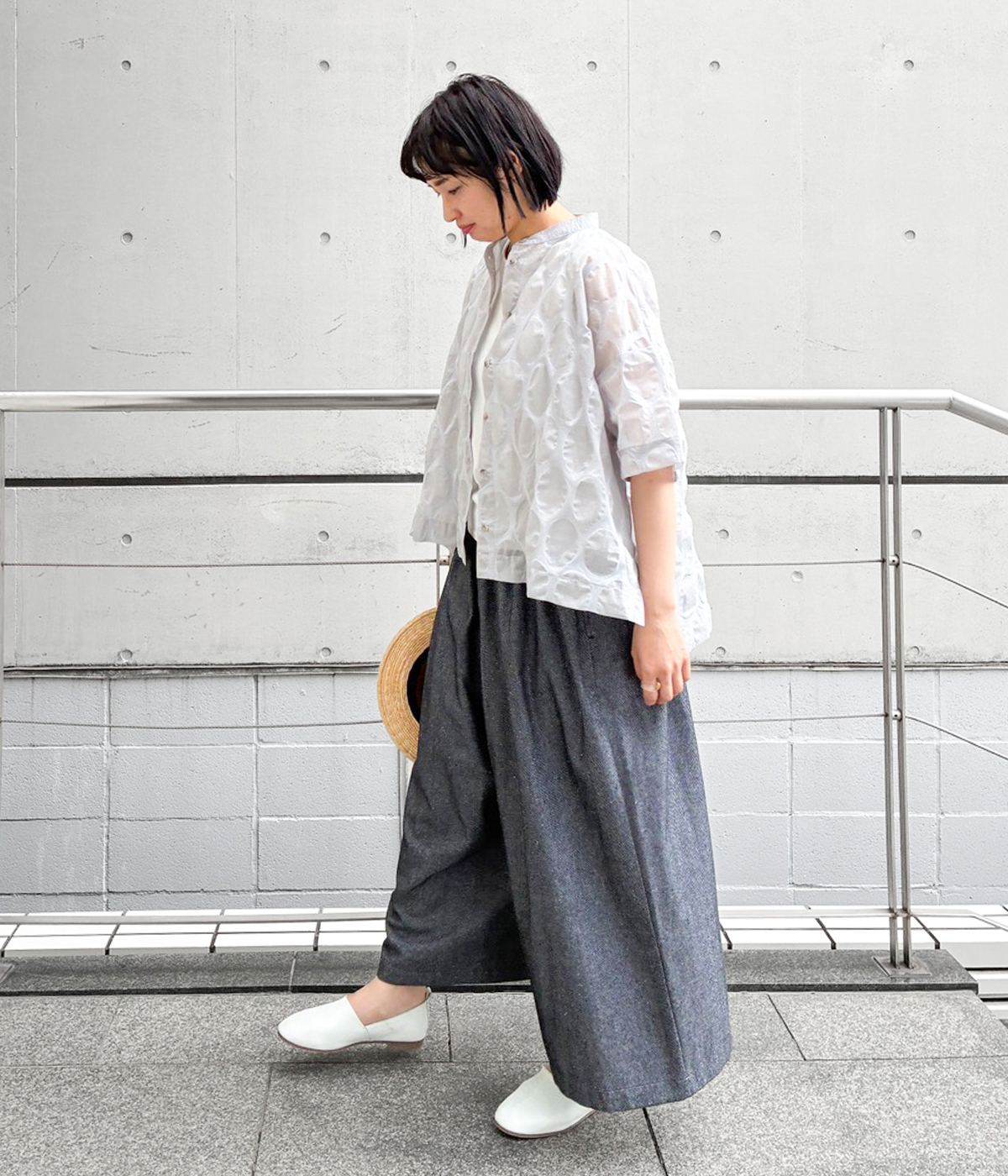 9番手リネン多釦ワンピースの着用コーディネート