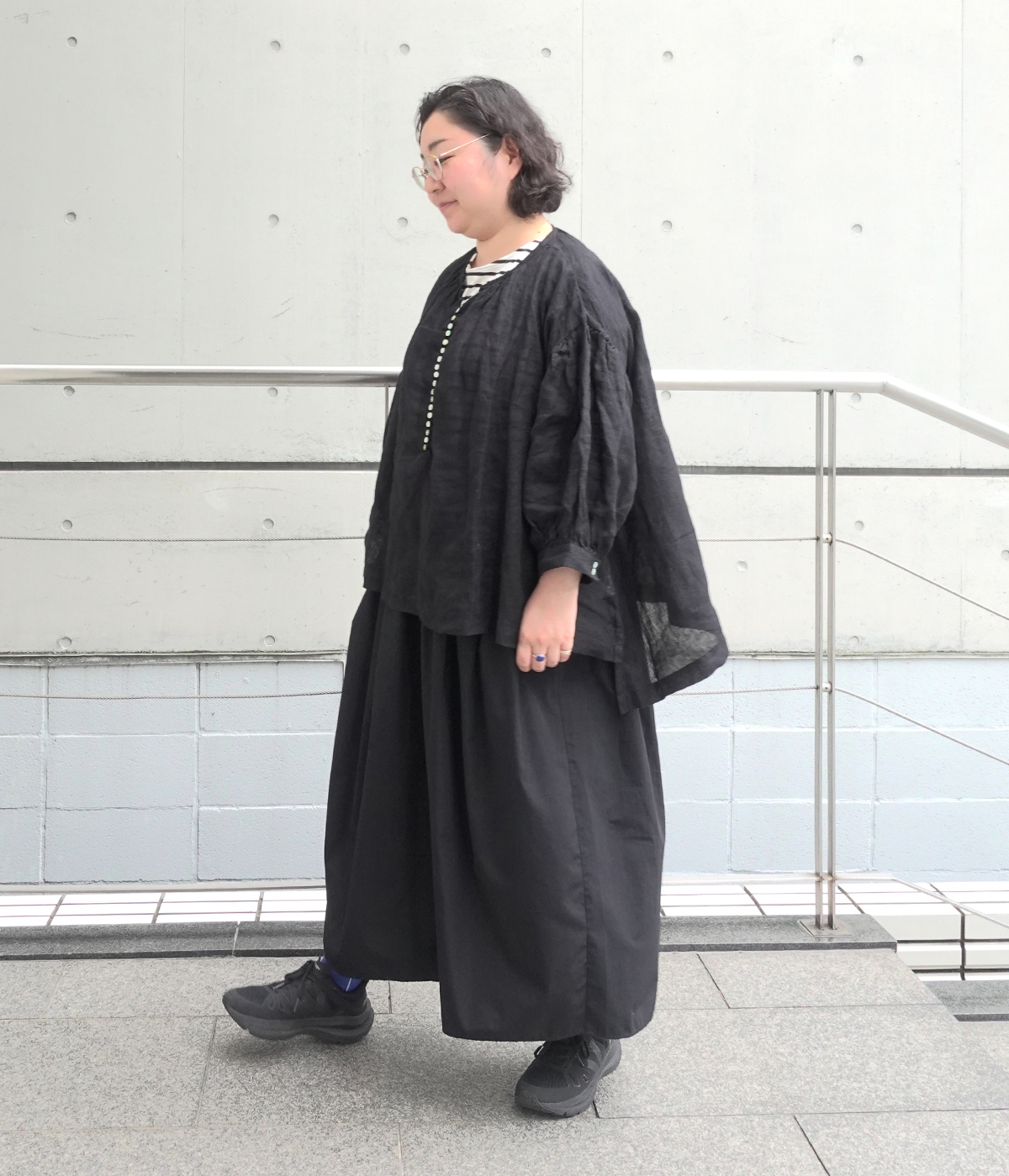 別注|リネンシャンブレー 多ボタンふんわりブラウスの着用コーディネート
