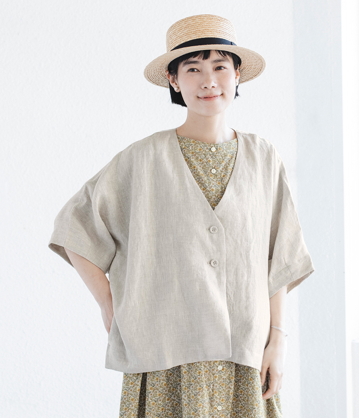 リネンキャンバスセーラーカラーブラウスの着用コーディネート