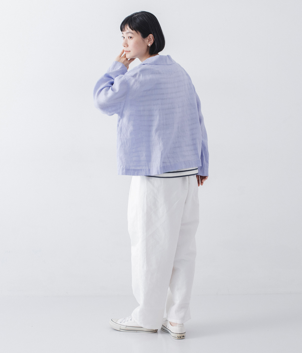 リネンキャンバスセーラーカラーブラウスの着用コーディネート