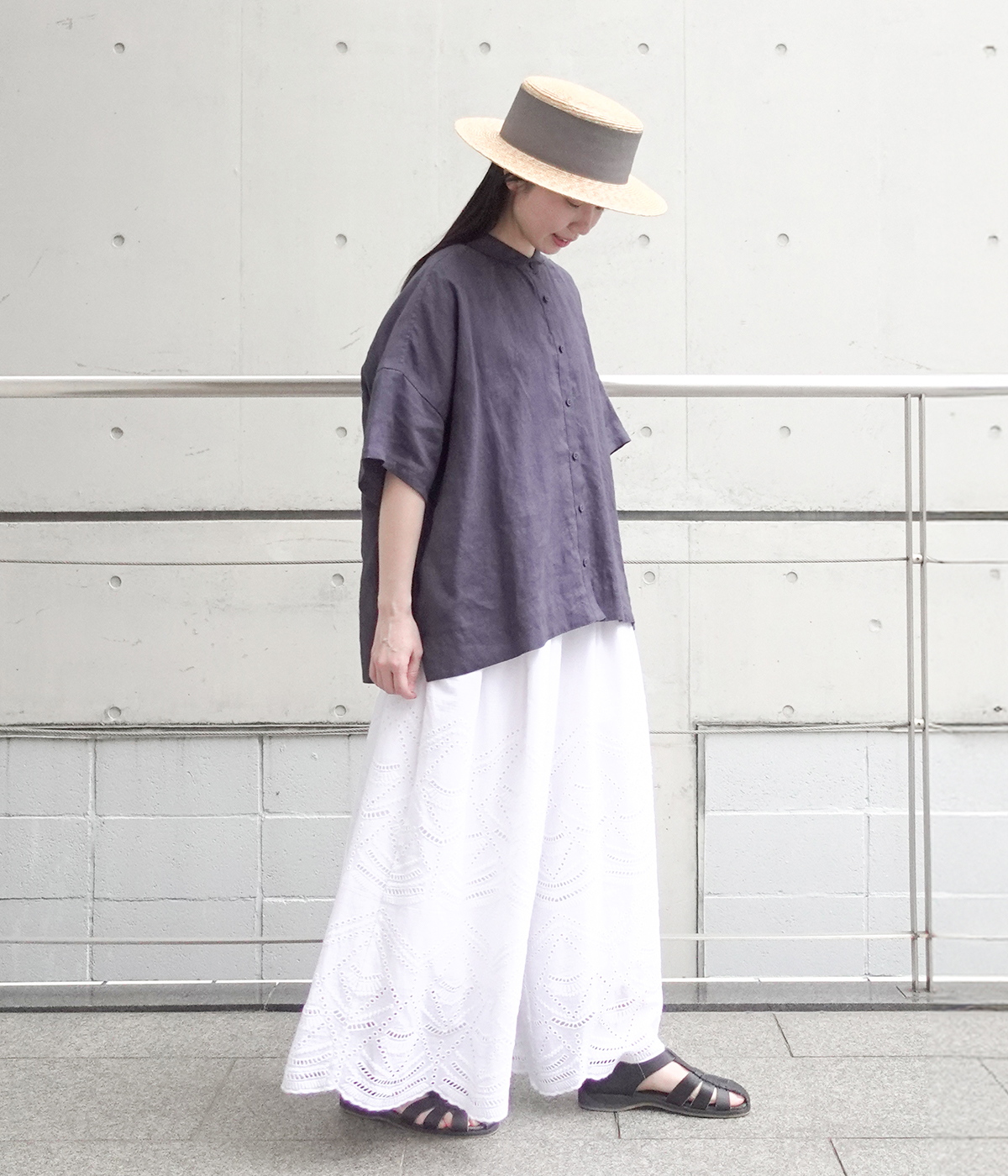 別注|14番手リネン多ボタンギャザーワンピースの着用コーディネート
