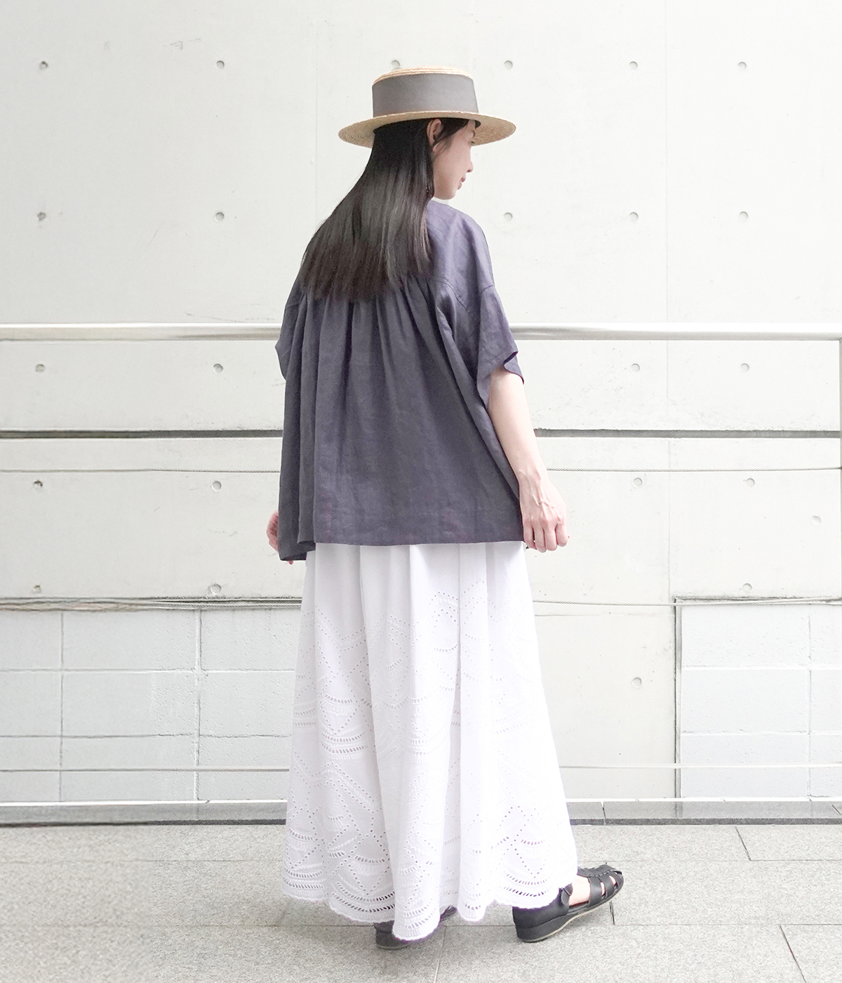 別注|14番手リネンギャザー切り替えワンピースの着用コーディネート