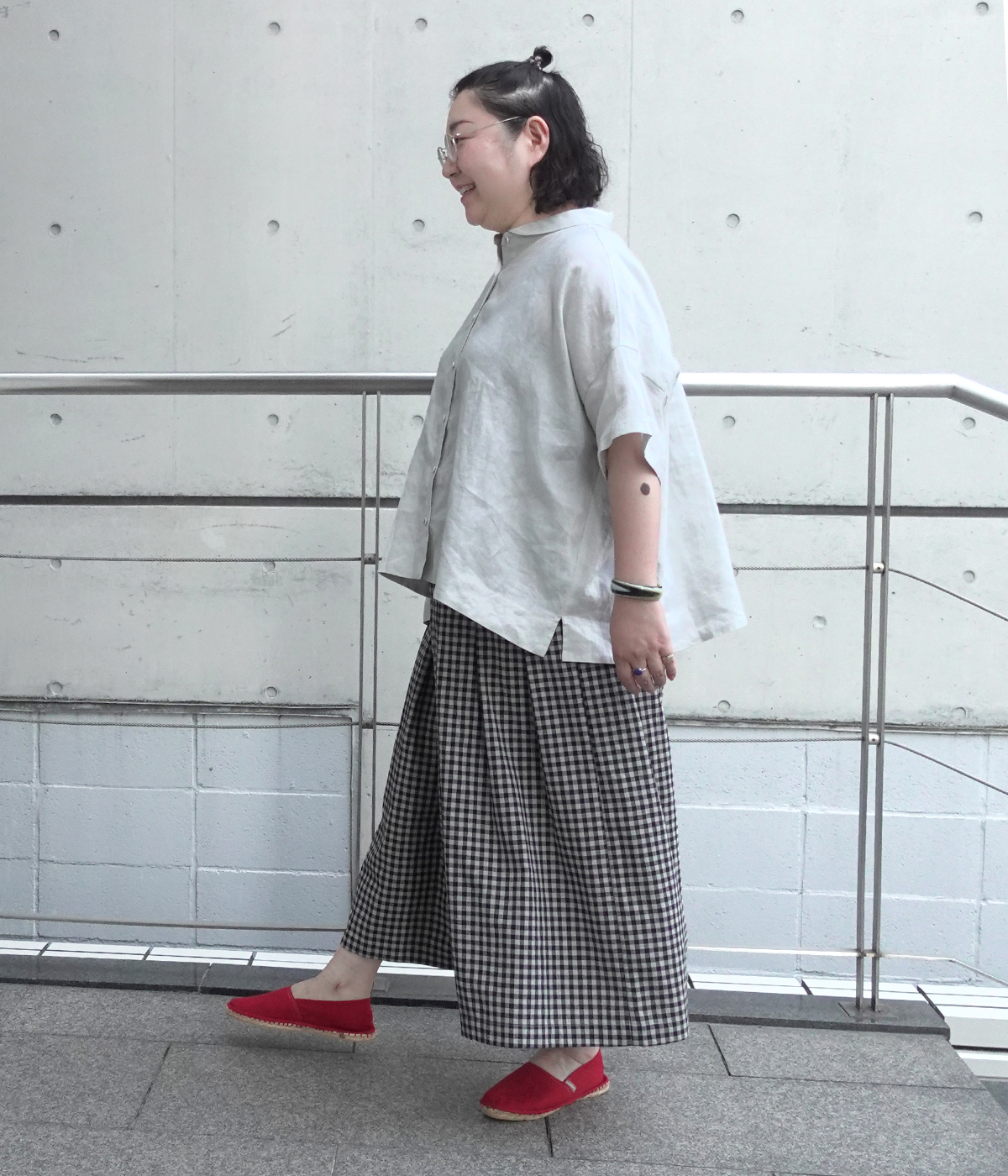素肌喜ぶカラーリネンポロの着用コーディネート