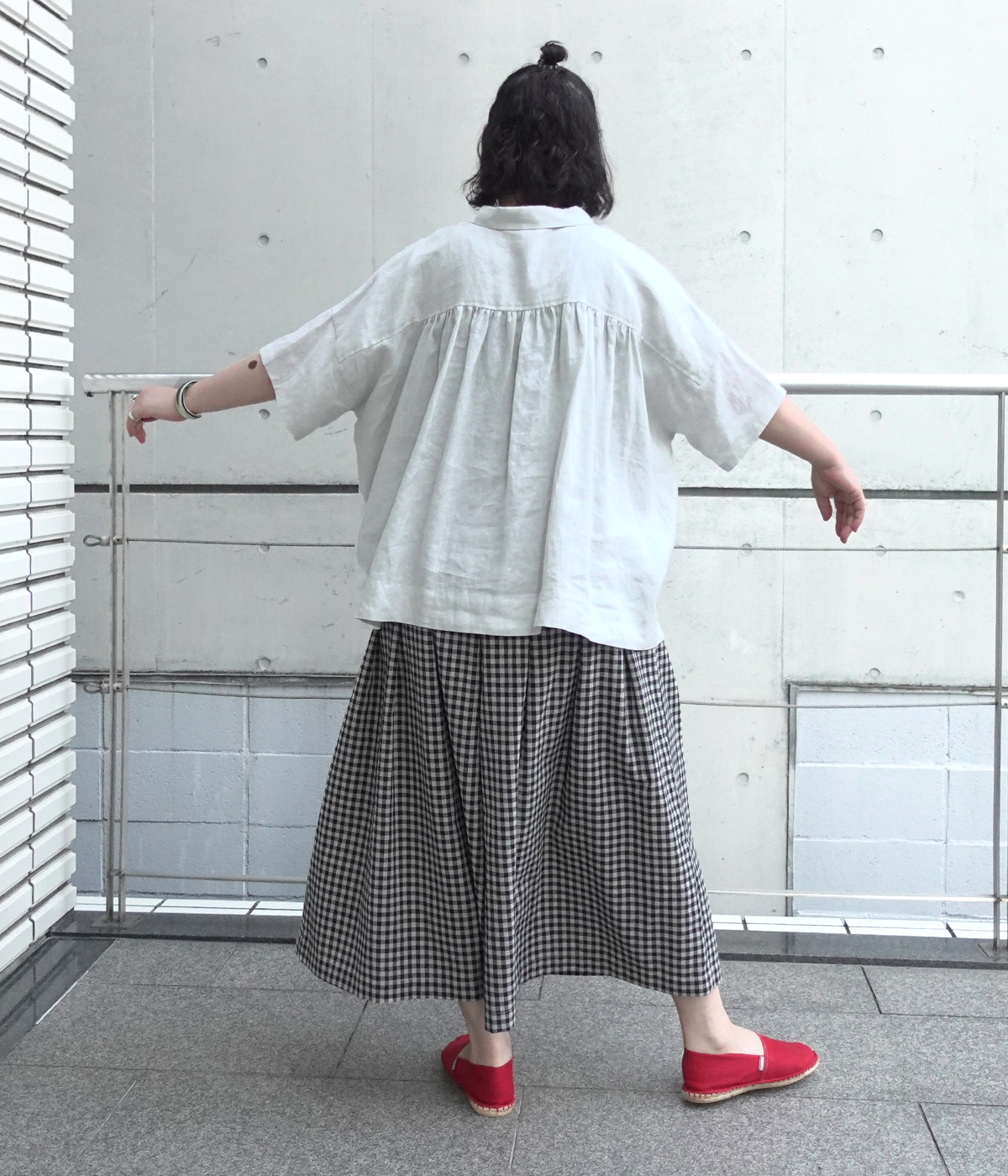 nop de nod、ista-ire、ubasokuなどバイイング担当。トップス:MかL(ものもよる)、ボトムス:L、シューズ:23.5~24cmシンプル、ゆったり。肩幅がせまくてなで肩