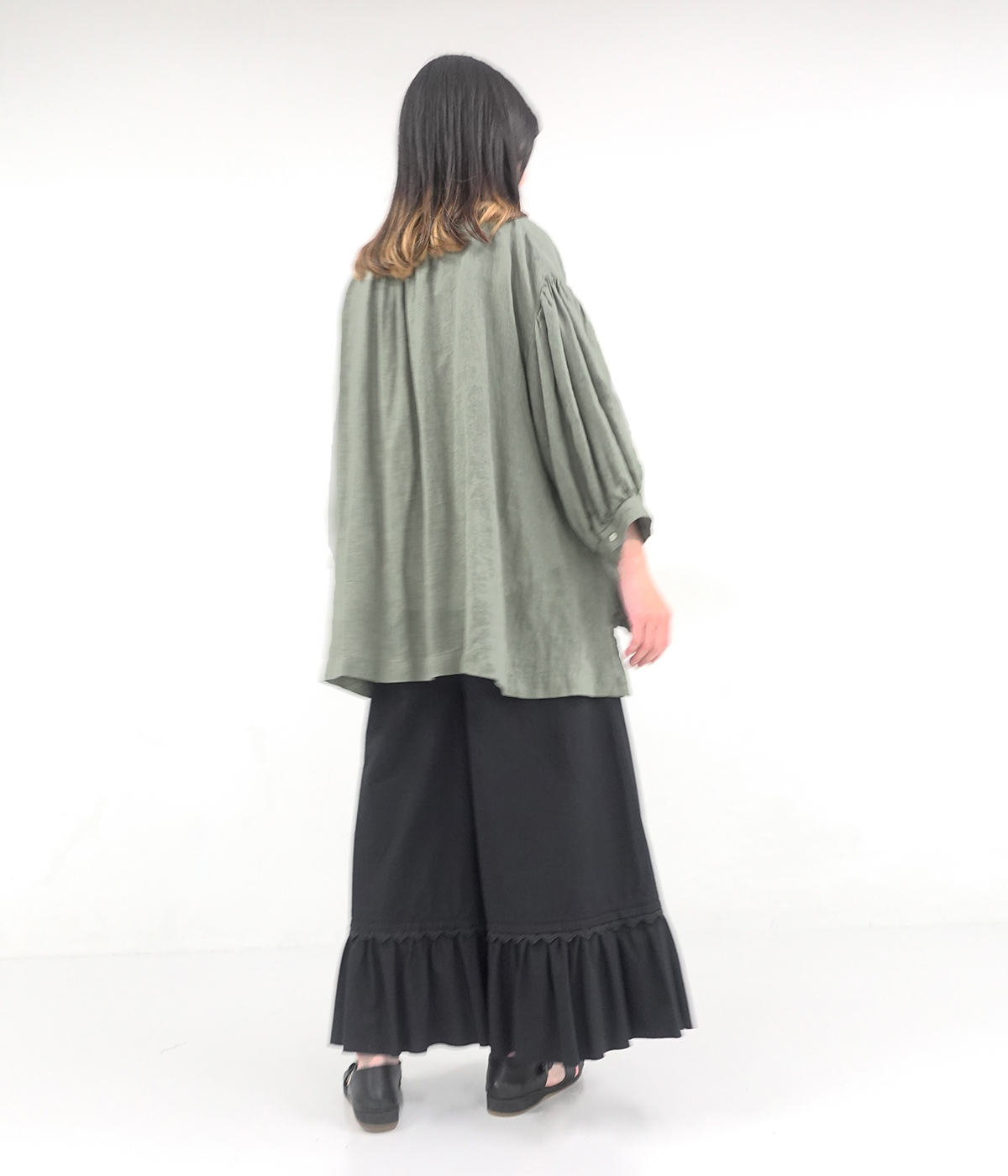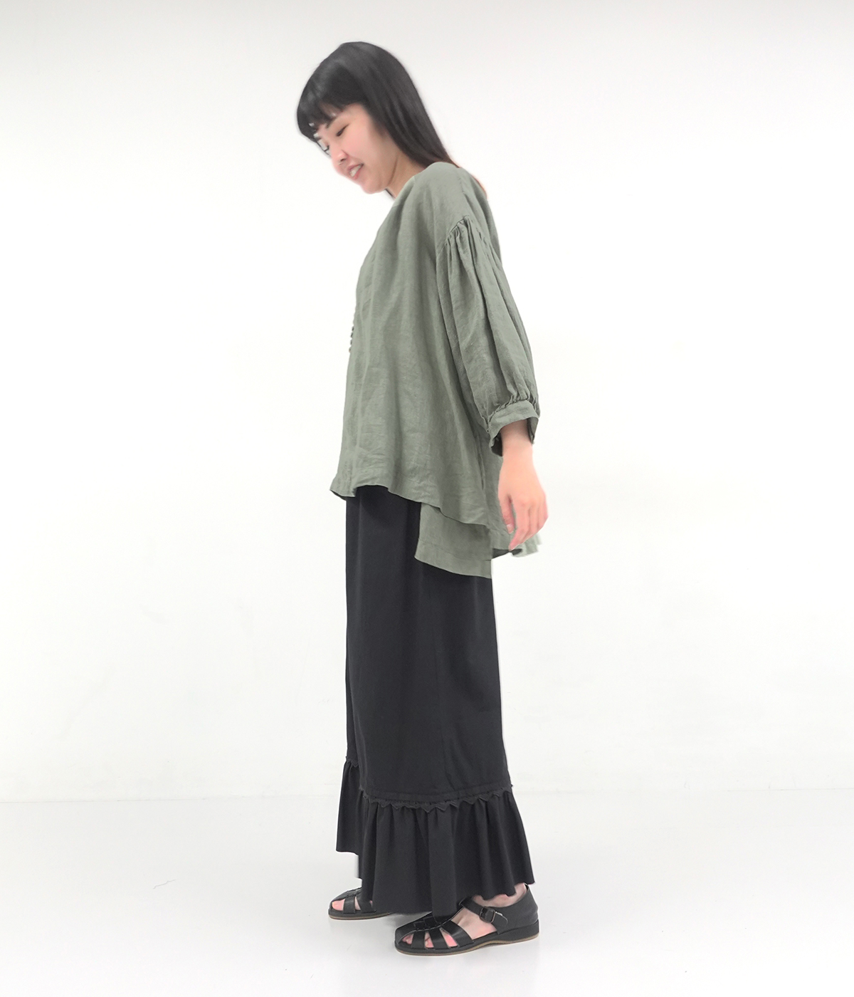 コットンリネン袖リブプルオーバーブラウスの着用コーディネート