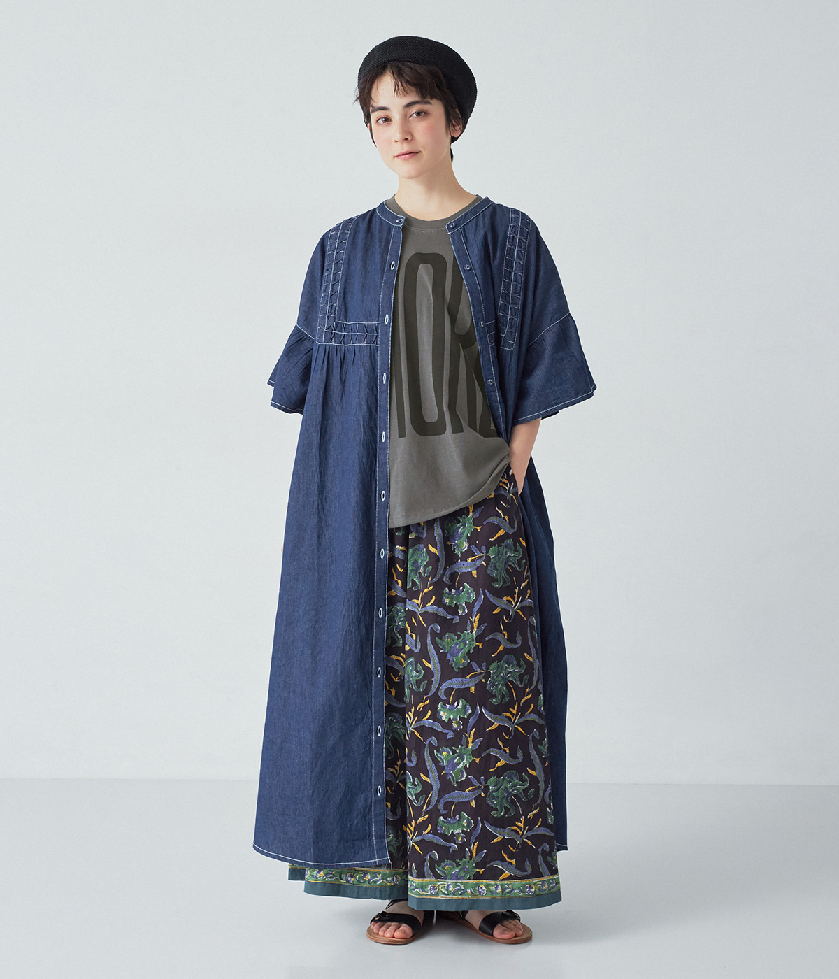 コットンリネン甘撚りデニム フリンジブラウスの着用コーディネート