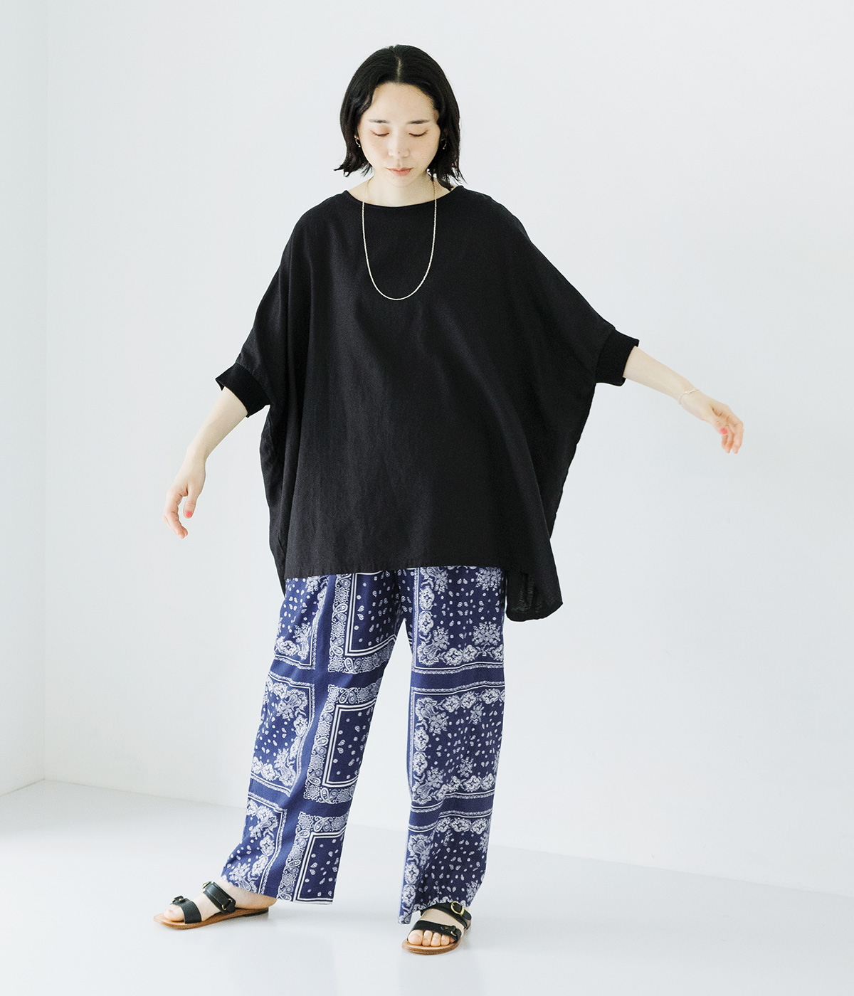 コットンリネンプルオーバーブラウスの着用コーディネート