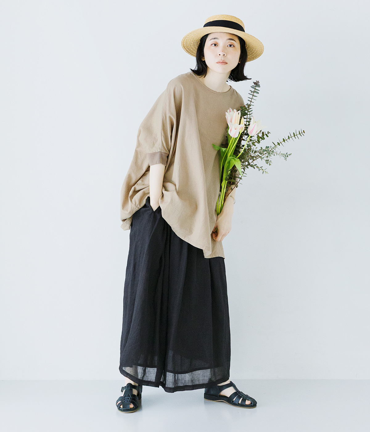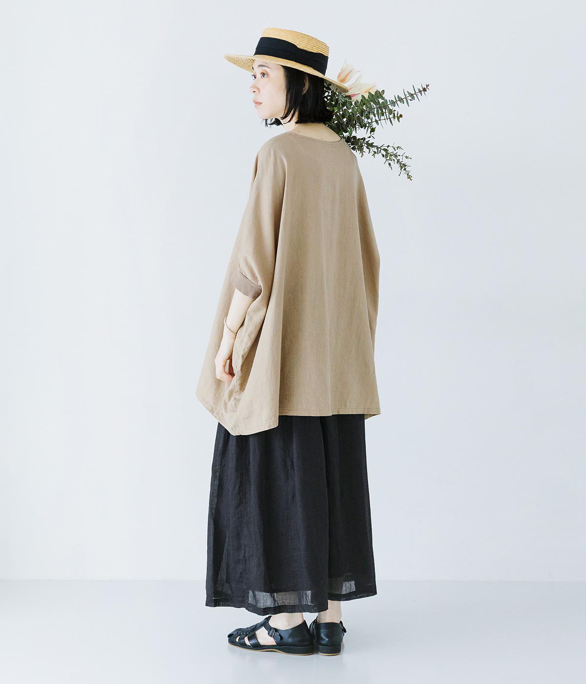 コットンリネンプルオーバーブラウスの着用コーディネート