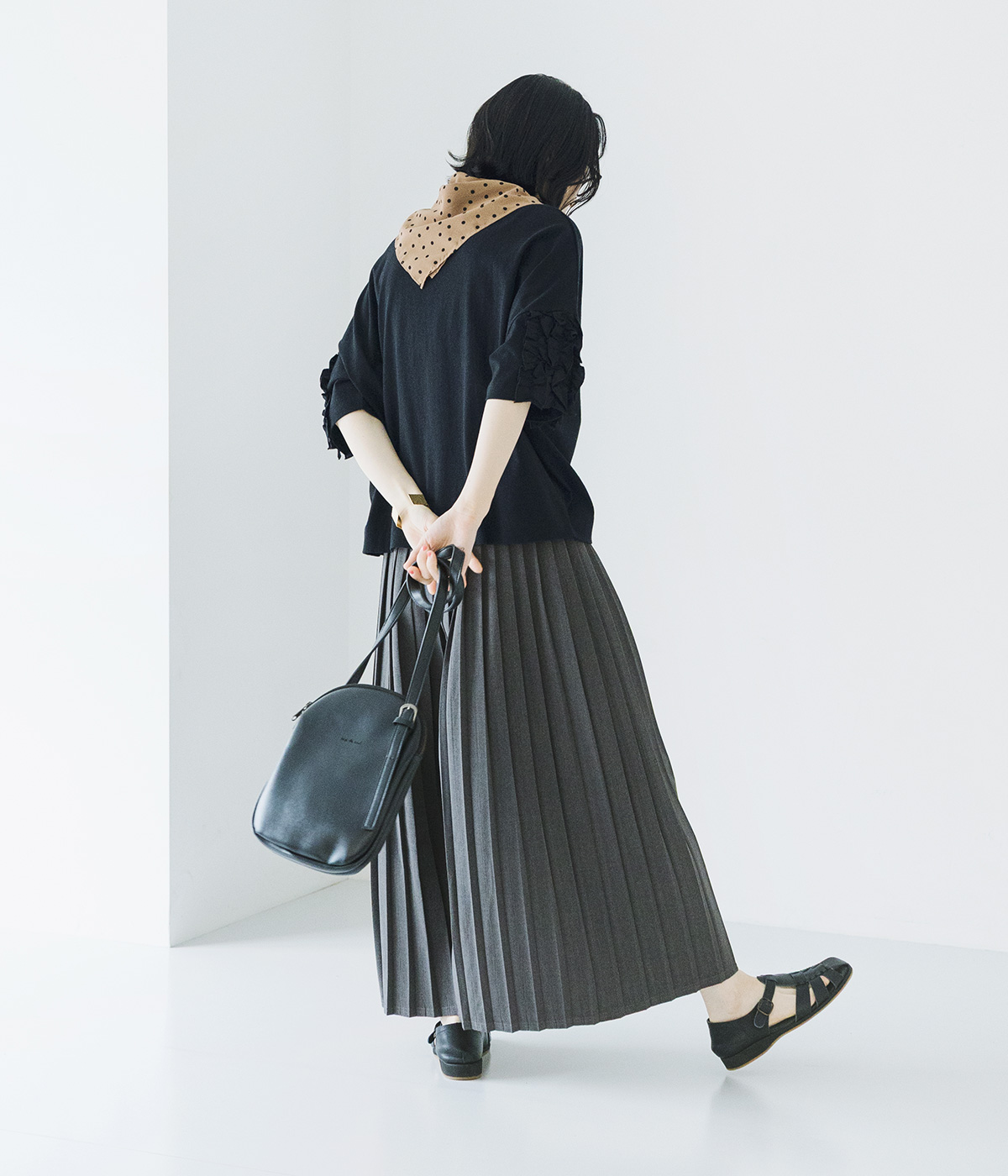 着るだけでサマになる フリル5分袖Tシャツの着用コーディネート